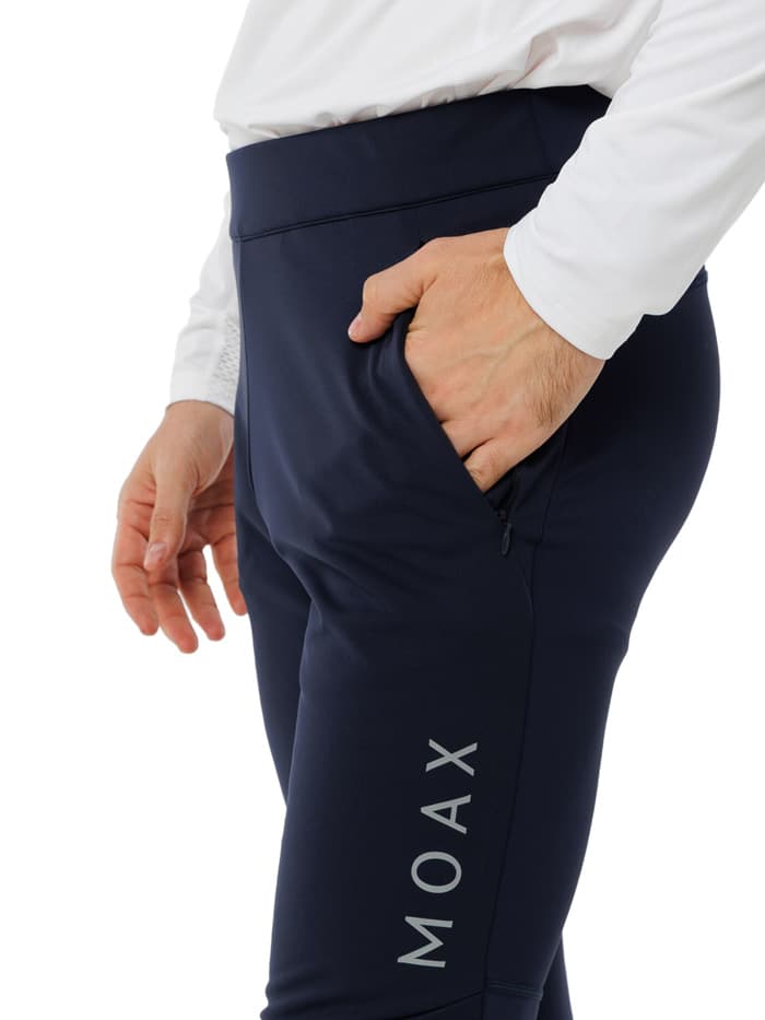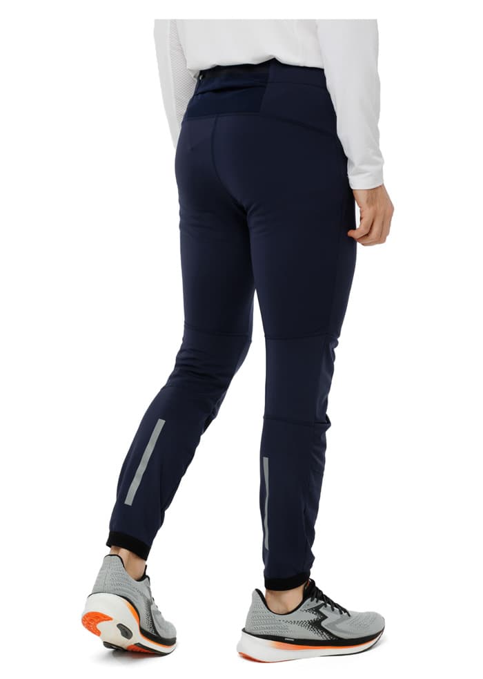 Передняя часть выполнена из трехслойного софтшелла с мембраной, который надежно защищает от ветра и холода, а задняя - из эластичного трикотажного материала, обеспечивающего отличную вентиляцию и терморегуляцию. Такое сочетание делает брюки идеальными для лыжных тренировок, бега и других зимних видов активности.