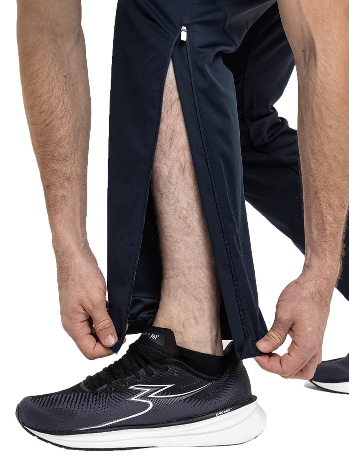 С передней стороны располагается дышащая ветрозащитная мембрана, которая эффективно защищает от холодного ветра, сохраняя тепло и комфорт в сложных погодных условиях. Регулируемый пояс позволяет настроить посадку под индивидуальные предпочтения для максимального комфорта. Молнии внизу штанин облегчают надевание и снятие штанов, особенно поверх обуви. Светоотражающие элементы повышают безопасность на тренировках в условиях недостаточной освещенности.