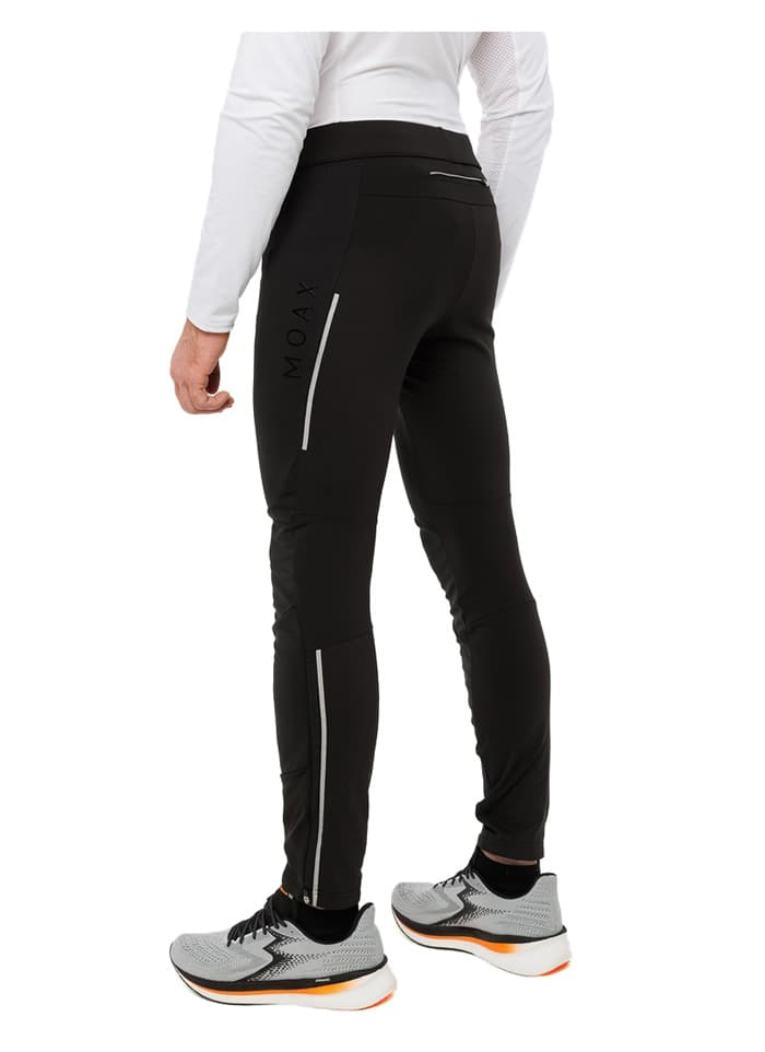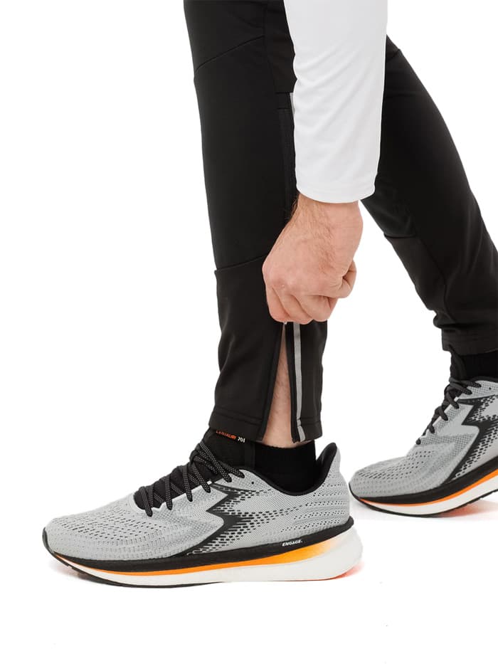 Передние панели из ткани Softshell защищают от ветра и легких осадков, сохраняя тепло и комфорт, что делает штаны отличным выбором для непредсказуемых погодных условий. Задняя часть брюк сшита из эластичного дышащего материала с добавлением нейлоновых волокон для повышения устойчивости к износу. Задний карман на молнии позволяет разместить телефон, ключи или карточки. Внизу штанин предусмотрены молнии для удобного и быстрого переодевания, а светоотражающие детали повышают видимость в темное время суток.