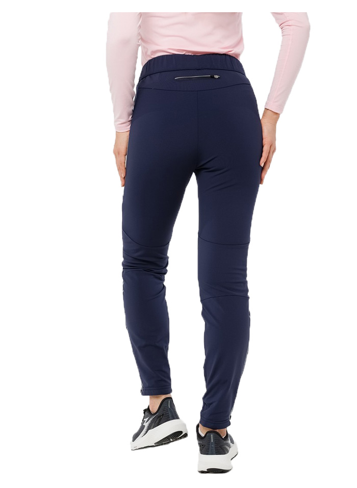 Передние панели из ткани Softshell защищают от ветра и легких осадков, сохраняя тепло и комфорт, что делает штаны отличным выбором для непредсказуемых погодных условий. Задняя часть брюк сшита из эластичного дышащего материала с добавлением нейлоновых волокон для повышения устойчивости к износу. Задний карман на молнии позволяет разместить телефон, ключи или карточки. Внизу штанин предусмотрены молнии для удобного и быстрого переодевания, а светоотражающие детали повышают видимость в темное время суток.