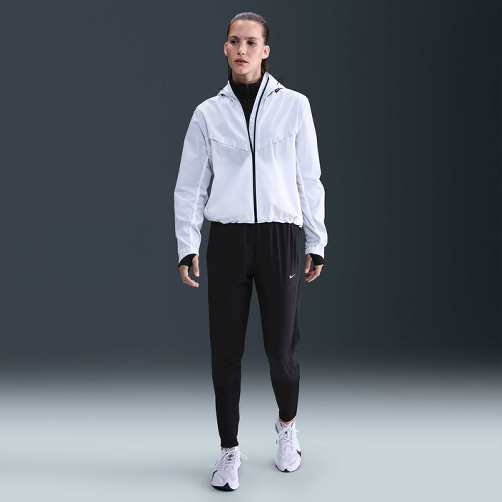 Комбинация легкого тканого материала в верхней части и эластичных трикотажных вставок ниже колен обеспечивает естественную свободу движений. Задний карман на молнии предназначен для хранения телефона, а два боковых кармана из сетки подходят для мелочей. Молнии на щиколотках позволяют легко надевать и снимать брюки, не снимая кроссовок.
