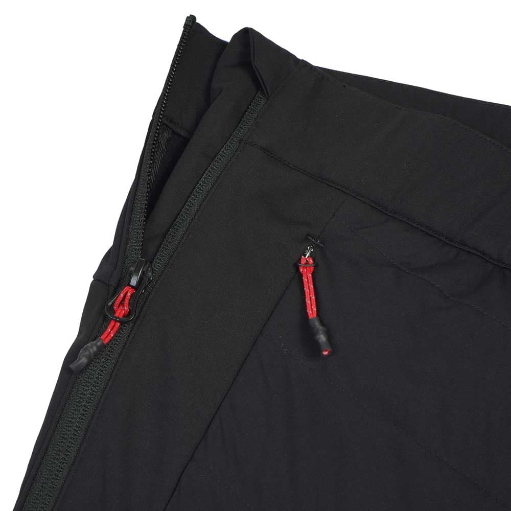 Основной материал - Softshell, обеспечивающий комфорт и надежную защиту от ветра и влаги. Мембрана с показателями водонепроницаемости 8000 мм и воздухопроницаемости 5000 г/м²/24 ч эффективно противостоит непогоде. Фронтальная часть усилена вставками с дополнительным утеплением 60 г, что делает брюки отличным выбором для тренировок и прогулок даже в морозные дни. В составе штанов полиэстер REPREVE®, произведенный из 100% переработанных материалов, что делает модель не только технологичной, но и экологичной.