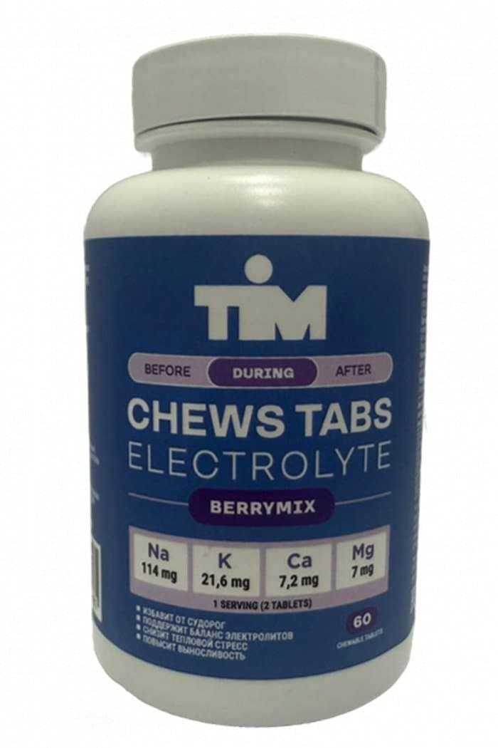 Артикул: 05-1461Новая удобная жевательная форма электролитов от TiM со вкусом лесных ягод. Одна порция (2 таблетки) содержит оптимальное соотношение натрия, магния, калия и кальция для поддержания и восполнения электролитного баланса во время физических нагрузок. Электролиты нужны организму для здоровья костей, нормального сокращения мышц и работы сердца. Таблетки можно использовать на длинных дистанциях - в дополнение к углеводным гелям. Во время тренировок рекомендуется потреблять одну порцию раз в 60 минут в прохладную погоду и одну порцию раз в 30 минут – в жару.
