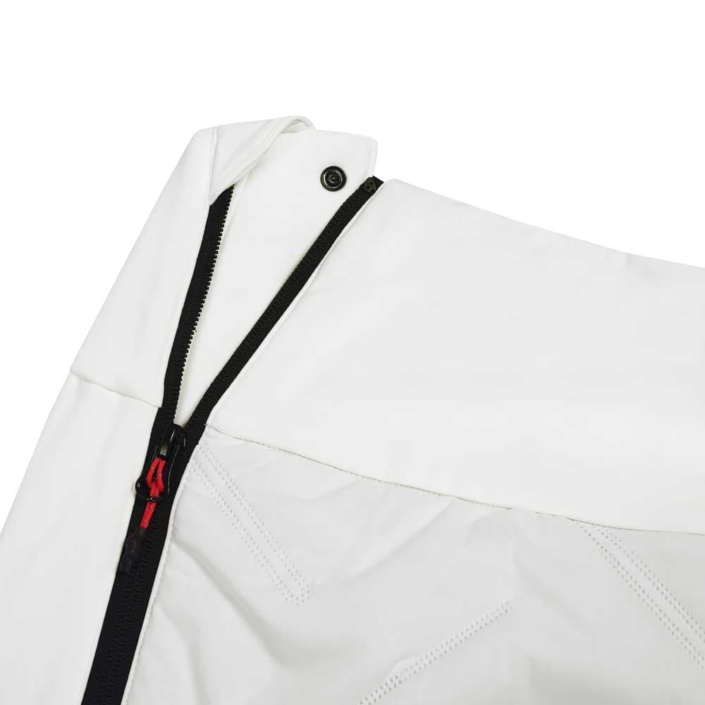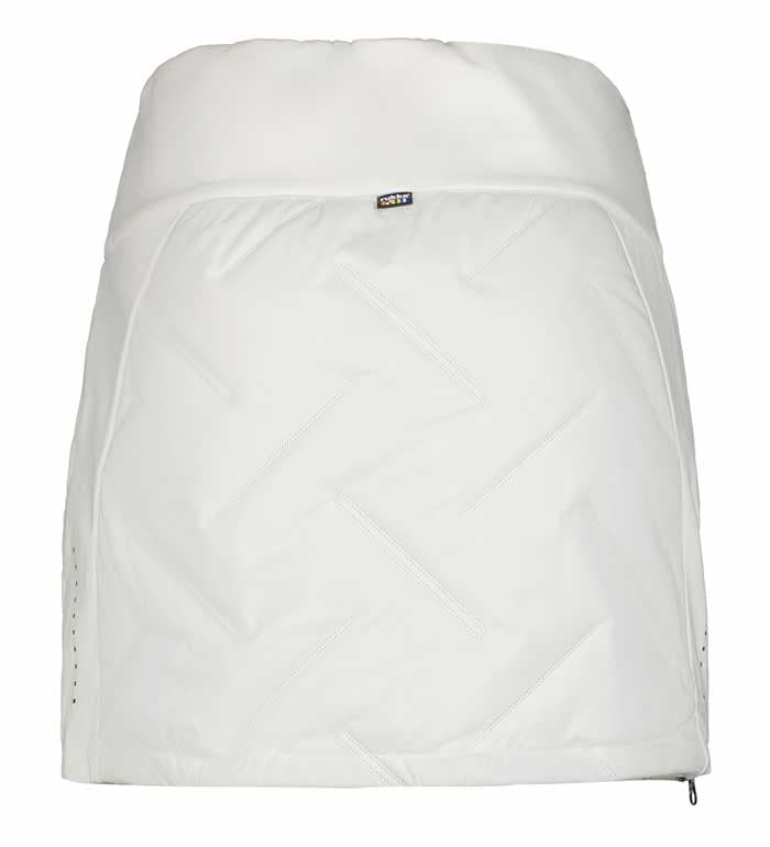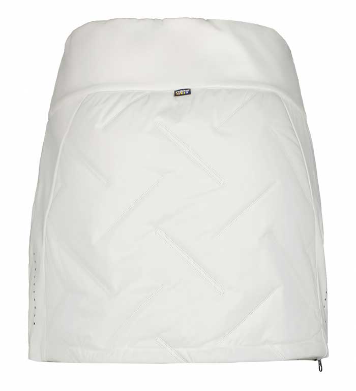 Фронтальная и задняя части юбки утеплены вставками с синтетическим наполнителем, который надежно сохраняет тепло и защищает от холода во время зимних тренировок или прогулок. Эластичные и дышащие участки материала обеспечивают комфортную посадку и свободу движений. Боковые молнии делают надевание юбки быстрым и удобным, позволяя легко комбинировать ее с термобельем или легинсами.