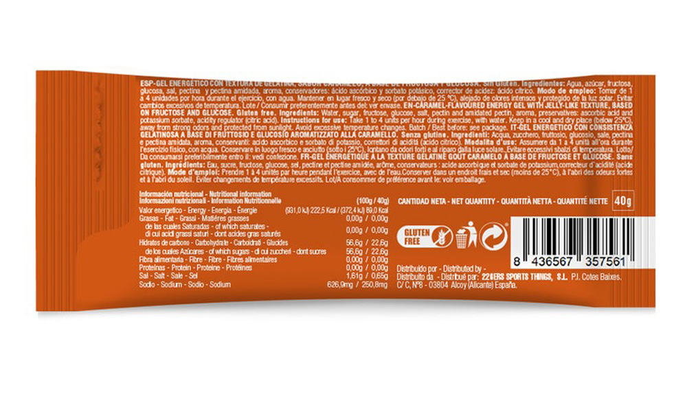 Порция содержит 22,6 г углеводов и 89 ккал, обеспечивая стабильный приток энергии, необходимый для поддержания интенсивности и выносливости при длительных физических нагрузках. Дополнительно гель содержит натрий, который помогает поддерживать электролитный баланс и предотвращает появление судорог и признаков обезвоживания.