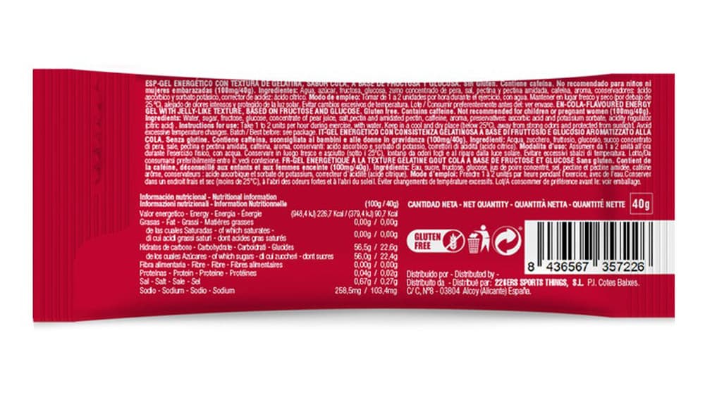 Порция содержит 22,6 г углеводов и 90,7 ккал, обеспечивая стабильный приток энергии, необходимый для поддержания интенсивности и выносливости при длительных физических нагрузках. Дополнительно гель содержит натрий, который помогает поддерживать электролитный баланс и предотвращает появление судорог и признаков обезвоживания. Кофеин, присутствующий в составе, способствует повышению концентрации и выносливости, снижает ощущение усталости и помогает поддерживать высокий уровень работоспособности во время продолжительных или интенсивных тренировок.