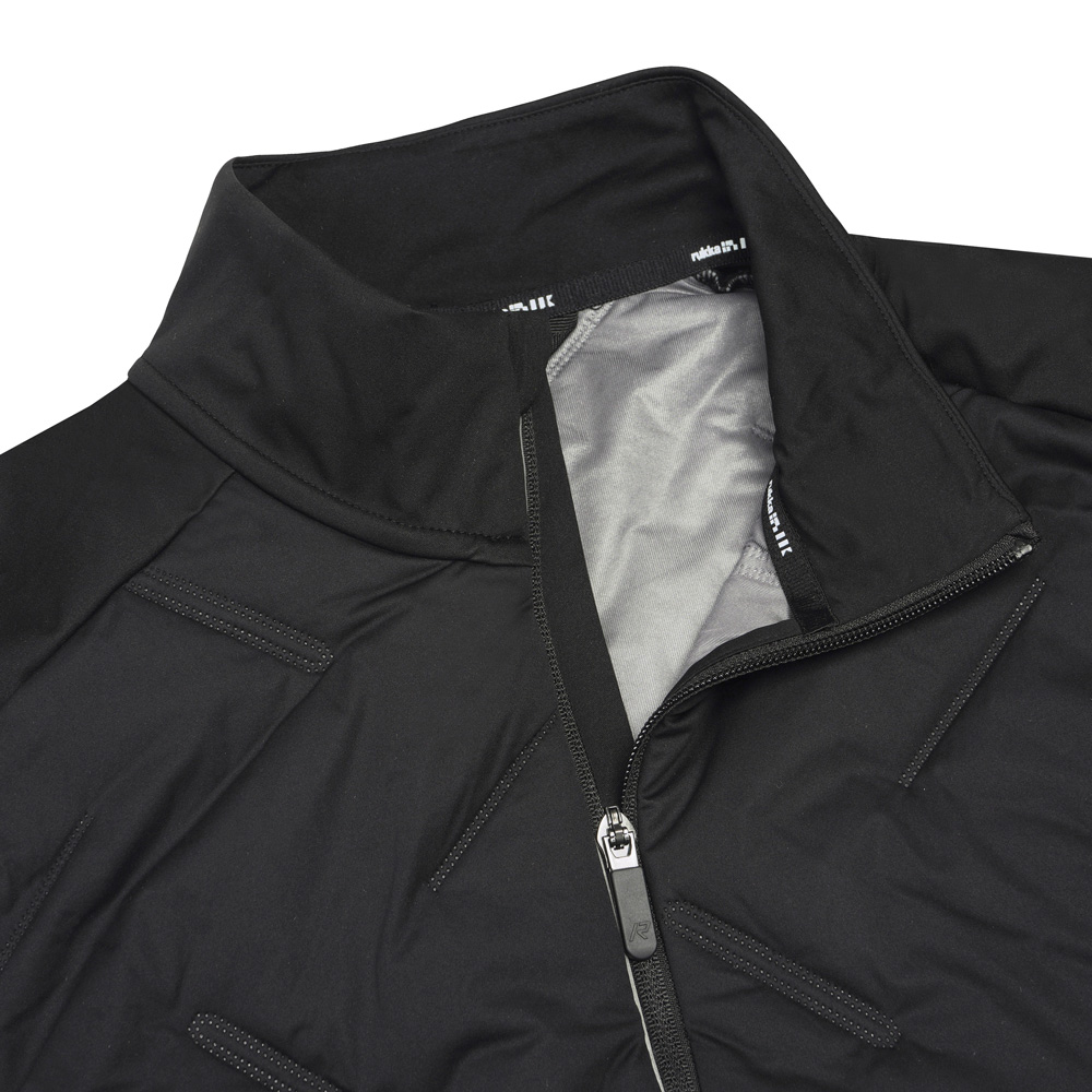 На фронтальной и задней частях модели располагаются вставки с синтетическим утеплителем плотностью 100 г, который надежно сохраняет тепло даже при низких температурах, не утяжеляя изделие. Мембранный материал с показателями водонепроницаемости 10000 мм и паропроницаемости 5000 г/м²/24 ч защищает от влаги и ветра, обеспечивая комфорт во время интенсивных тренировок на свежем воздухе.