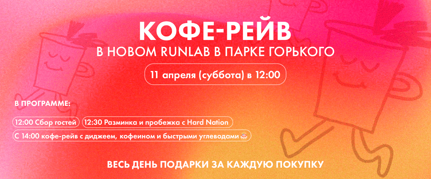 КОФЕ-РЕЙВ в новом Runlab в Парке ГорькогоКОФЕ-РЕЙВ в новом Runlab в Парке Горького: готовь кроссовки, зови друзей! 💛