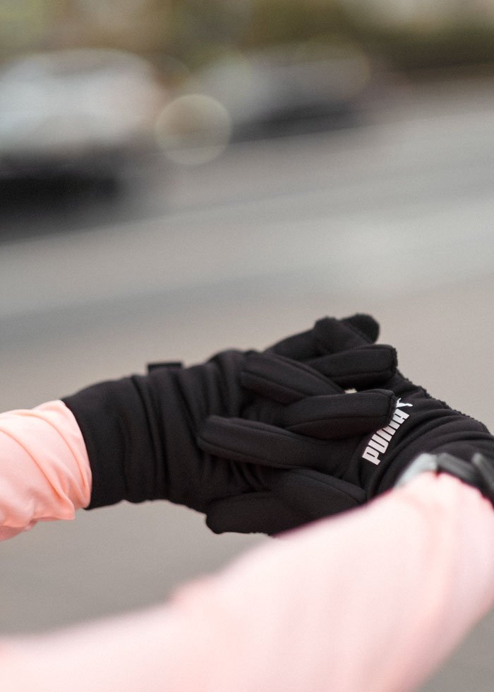 На ладони нанесен силиконовый принт для хорошего сцепления. На больших и указательных пальцах располагаются тачскрин-активные вставки, позволяющие пользоваться смартфоном, не снимая перчаток. Светоотражающие элементы повышают безопасность в тёмное время суток.