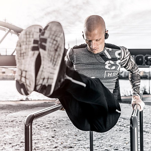 Беспроводные наушники для занятий спортом устойчивые к дождю и поту. Основание гибкое, с отлично выверенной подгонкой, поэтому наушники надежно зафиксированы и не двигаются даже во время занятий активными видами спорта.