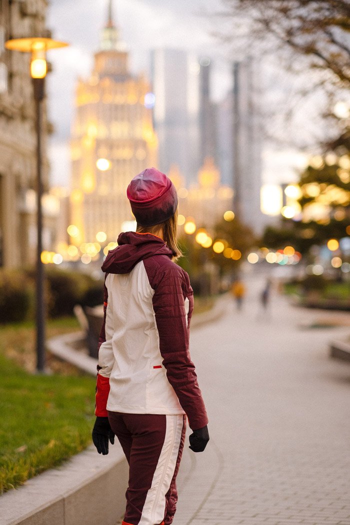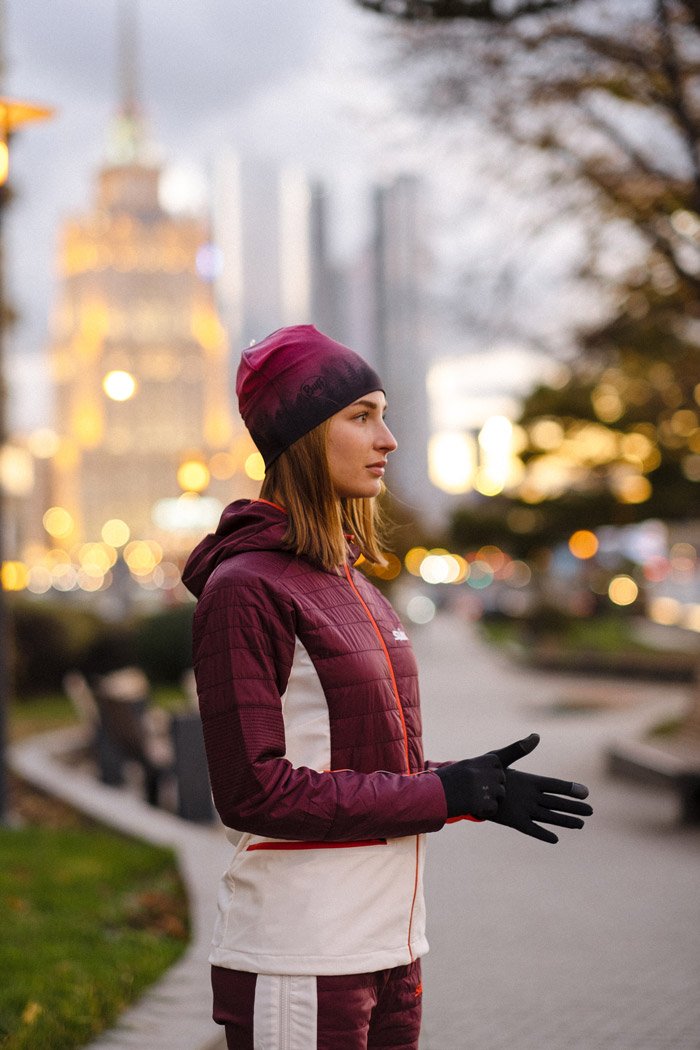 В задней части используется эластичная ткань-софтшелл двойного плетения для сохранения воздухопроницаемости и дополнительной защиты от холода. Высокий ворот, совмещенный с утепленным капюшоном, отлично защищают шею и голову от непогоды, плотные манжеты на рукавах не позволяют холодному воздуху проникнуть под куртку.
