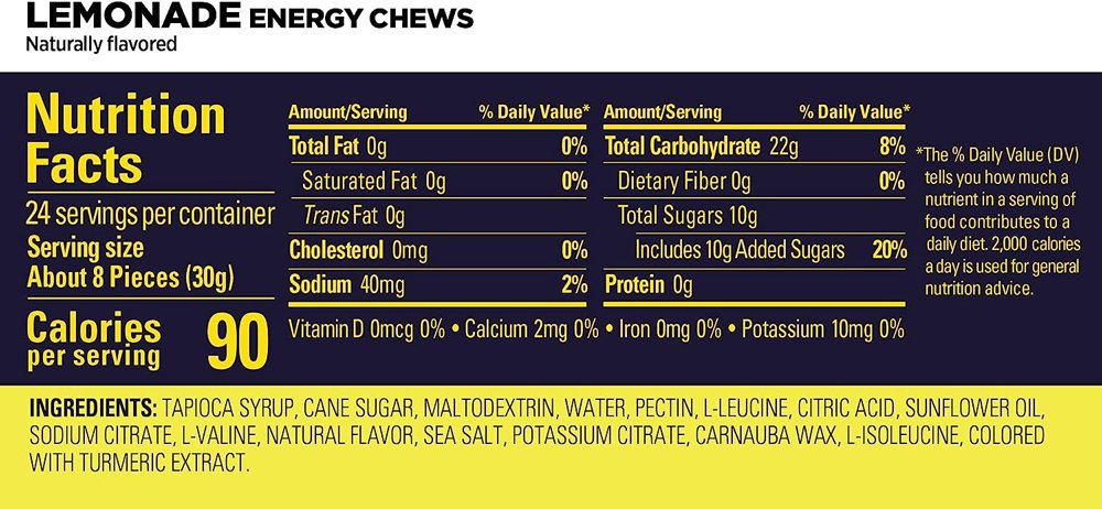 Жевательные конфеты с углеводами, электролитами и аминокислотами. Предназначены для пополнения организма энергией во время тренировок и соревнований. Содержат аминокислоты (лейцин, валин, изолейцин) для предотвращения повреждения мышц.