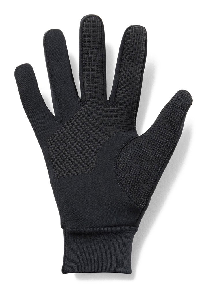 Тонкие перчатки из гладкого эластичного трикотажа с начесом внутри. Предусмотрена водоотталкивающая пропитка UA Storm для защиты от небольшого дождя и снега.