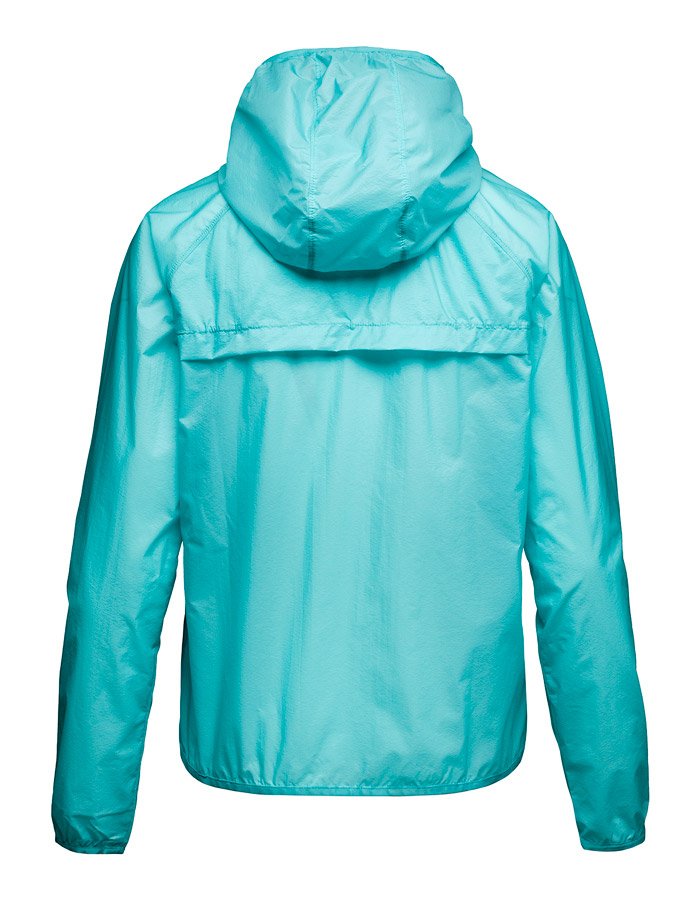 Низ куртки, манжет и кромка капюшона обработаны эластичной лентой со светоотражающей полосой. Слева вместительный карман на молнии с клапаном сверху для защиты от попадания влаги. В этот же карман вы можете, легко и без усилий, сложить куртку для компактной переноски.