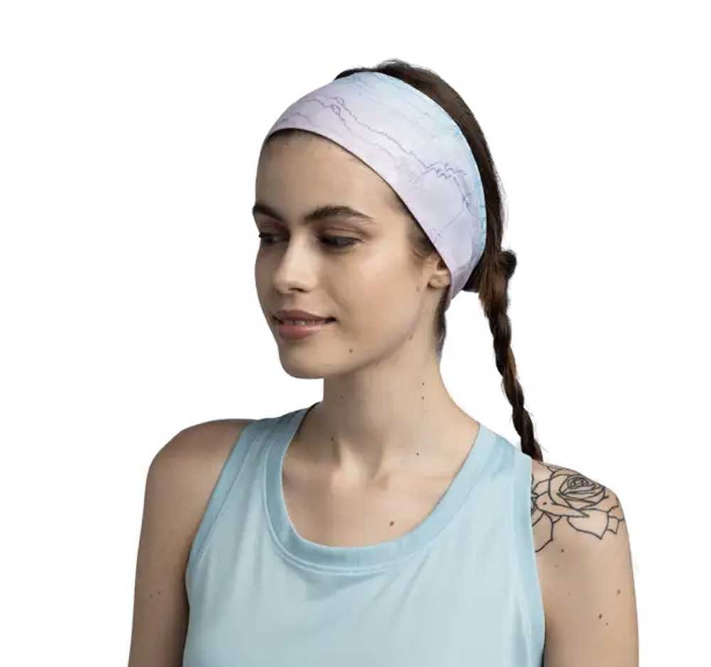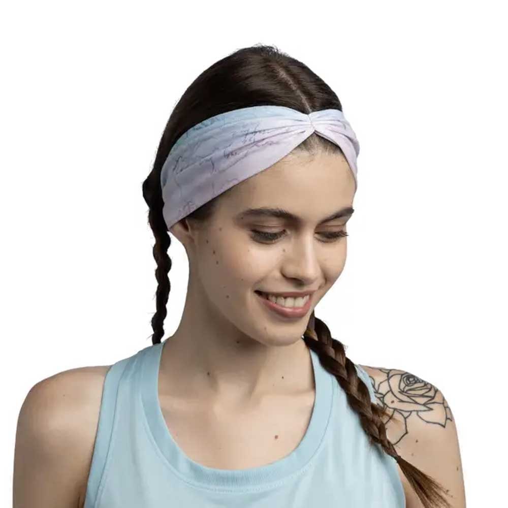 Повязку CoolNet UV+ Ellipse можно носить двумя способами: узлом назад, как обычную повязку, или узлом вперед, как чалму. Аксессуар помогает фиксировать волосы и защищает лицо от пота.