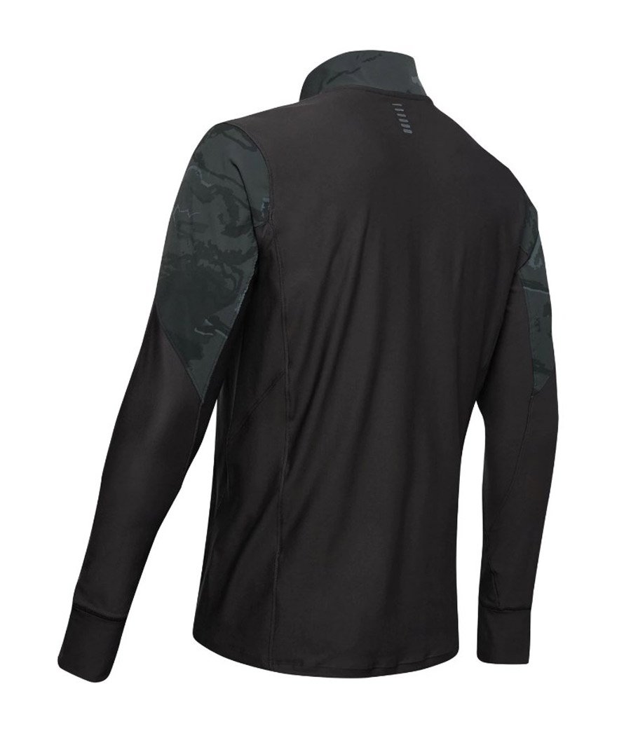 Мужская кофта для бега и занятий спортом на природе. Дизайн модели предусматривает вставки из износостойкой ткани камуфляжной расцветки на груди и плечах.