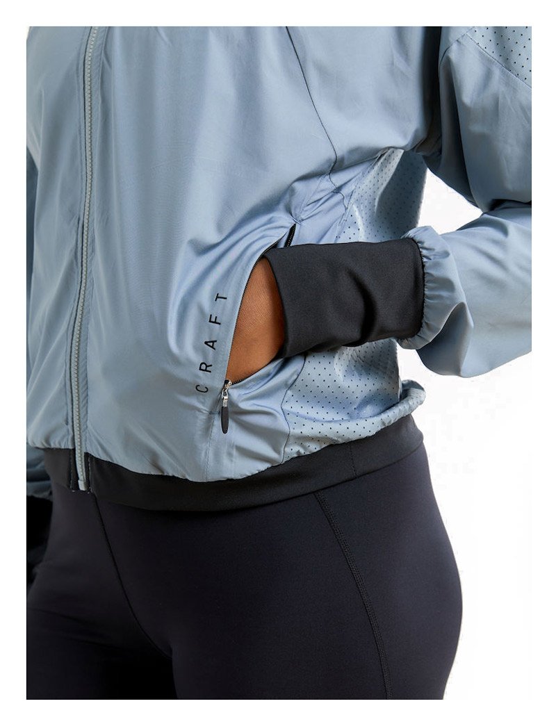 Низ куртки, воротник и манжеты рукавов выполнены из эластичной трикотажной резинки, обеспечивающей плотное прилегание. По бокам два кармана на молнии для мелочей, имеется два внутренних вместительных кармана. Вся спина и небольшой участок по бокам рукавов имеет перфорацию для вентиляции. На спине светоотражающий логотип.