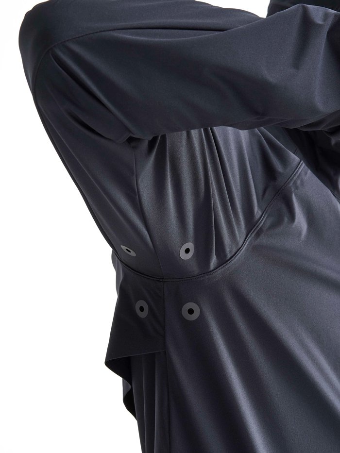 Куртка для бега в ненастную погоду из ветро- и водонепроницаемой ткани. Разрезы под шлицей на спине и лазерная перфорация обеспечивают охлаждение и вентиляцию при избытке тепла во время интенсивных тренировок.