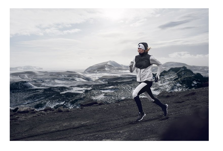 Женские тайтсы для зимнего бега с утепленными накладками на коленях и бедрах.