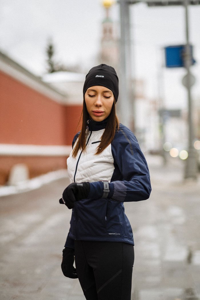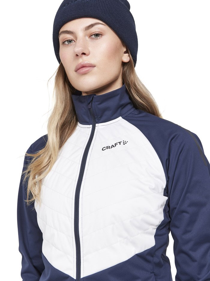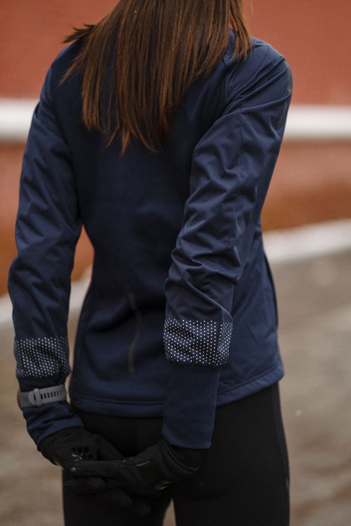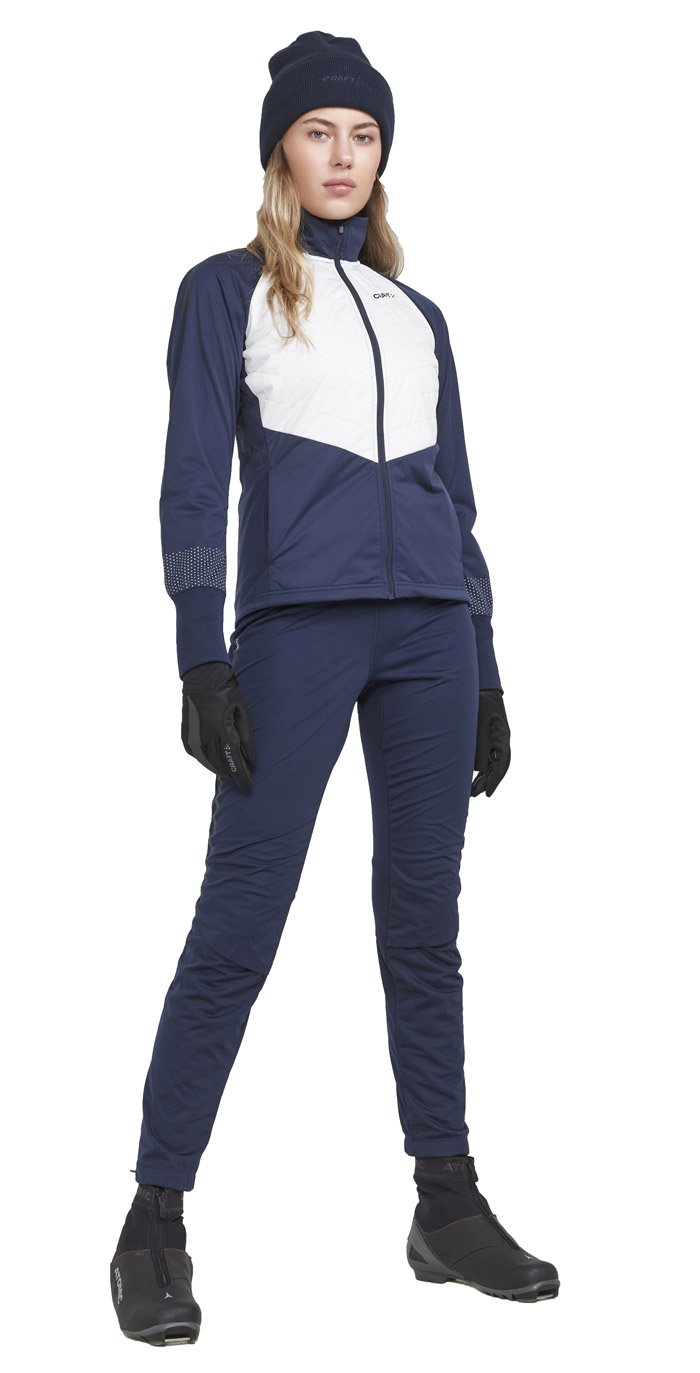 Женская куртка для катания на беговых лыжах и бега в зимний период. Впереди двойная стеганая ткань с утеплителем, поэтому модель великолепно согревает и защищает от ветра и влаги. Задняя часть куртки выполнена из эластичной дышащей ткани с начесом с внутренней стороны.