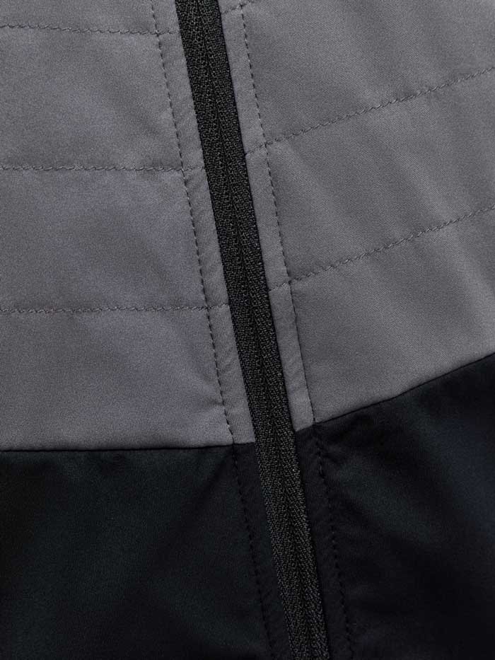 Теплая и эластичная мужская куртка для катания на лыжах и бега в зимний перид. Вставки из ветрозащитной и водонепроницаемой ткани, расположены на передней части и на рукавах. Трикотажная ткань, из которой выполнена спина куртки, обеспечивает эффективный отвод влаги и принудительную вентиляцию.