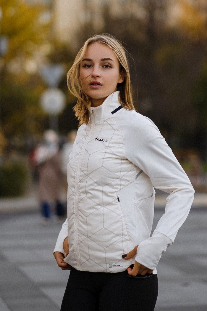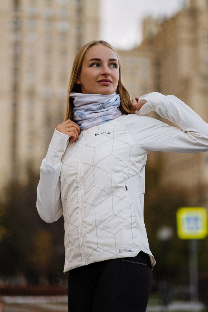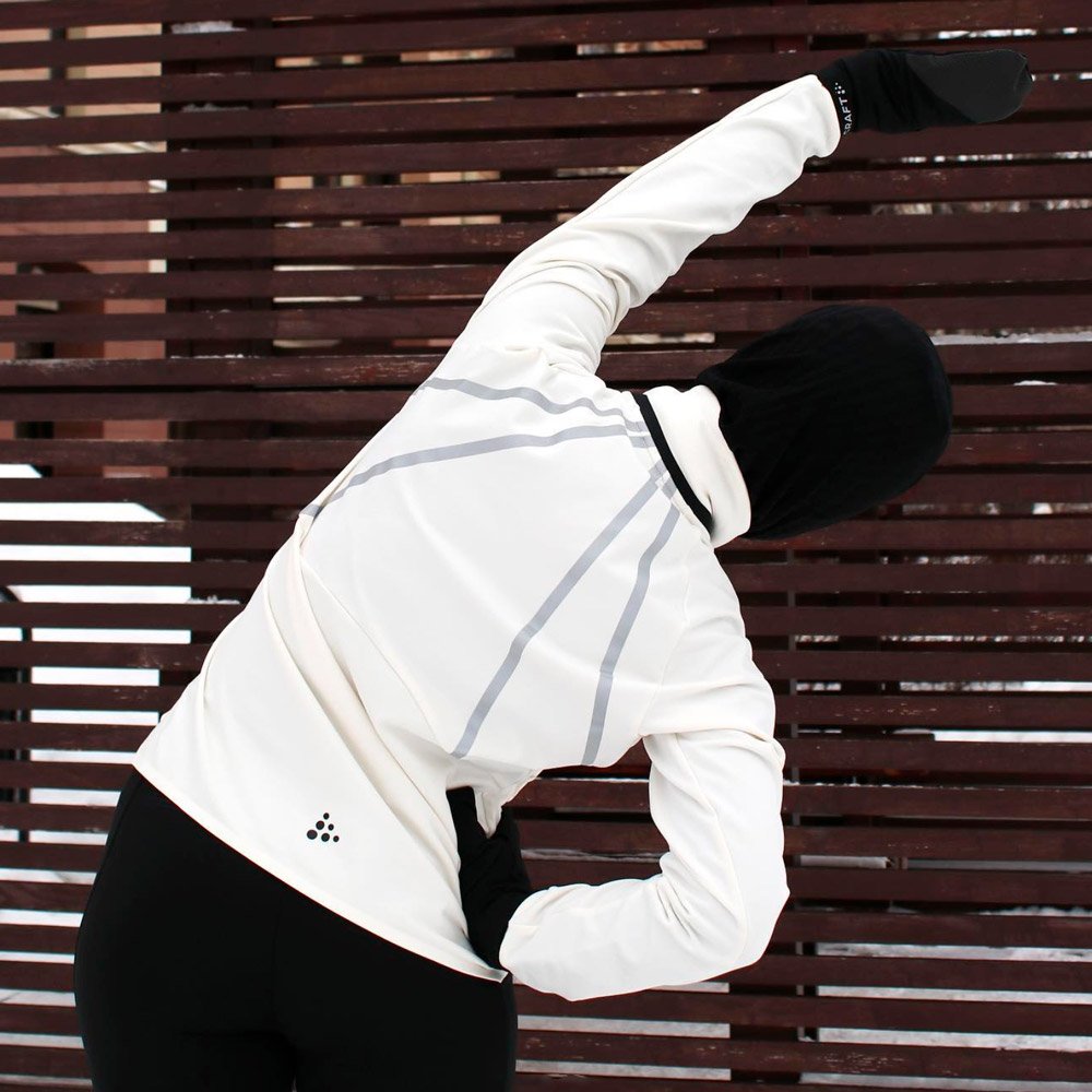 Мягкая и теплая куртка со светоотражающим принтом - оптимальный вариант для интенсивных тренировок в холодных зимних условиях. Спереди она изготовлена из водонепроницаемой и дышащей трехслойной ткани Ventair® с легкой подкладкой, а на рукавах и спине используется эластичный трикотаж, который позволяет эффективно контролировать уровень влажности и тепла.