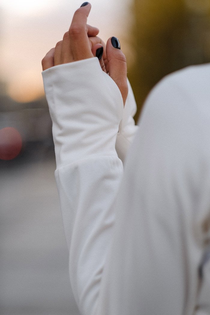 Захват для большого пальца на манжетах рукавов и потайные карманы на молнии создают дополнительный комфорт.