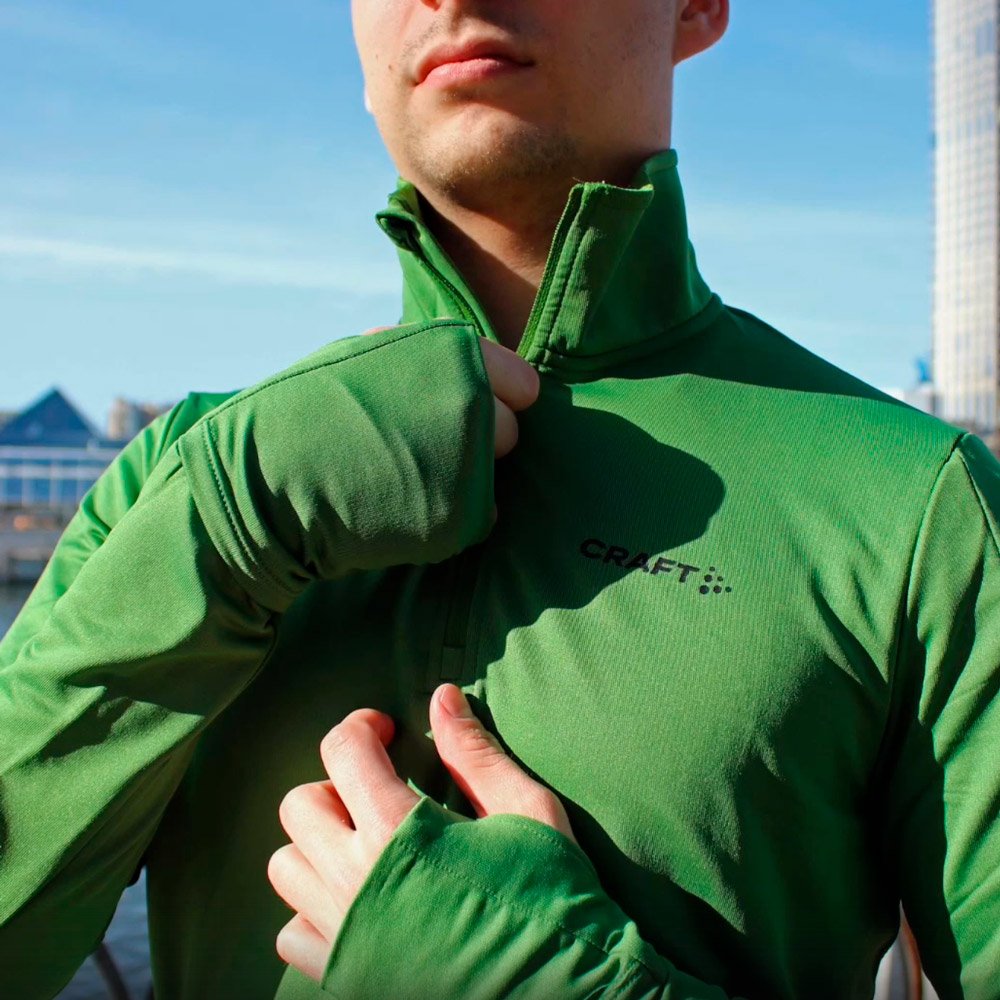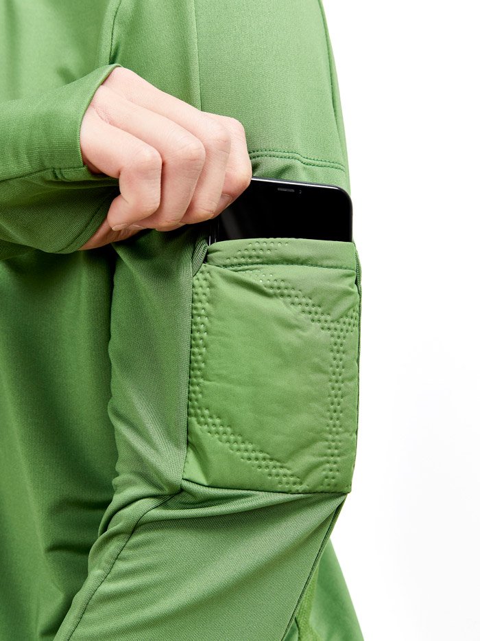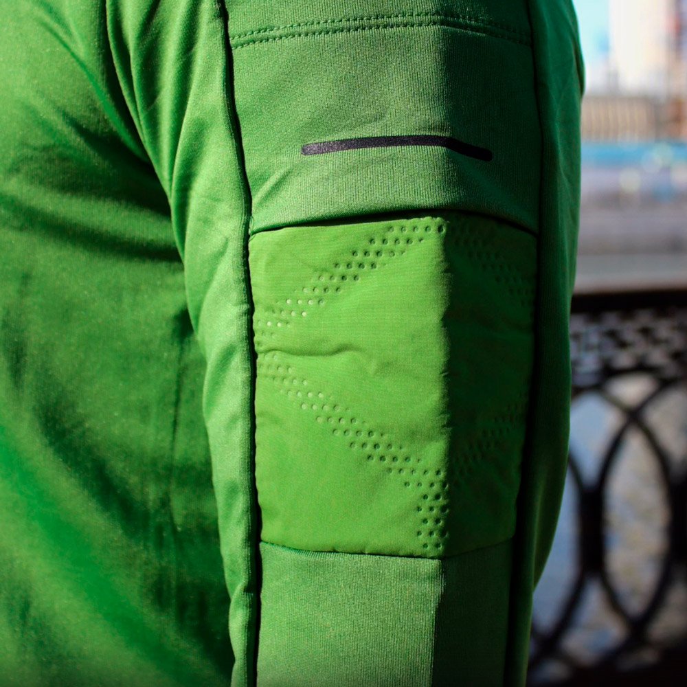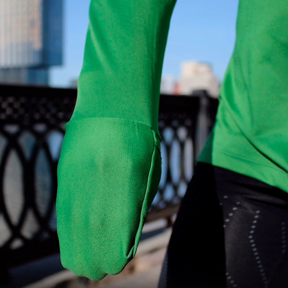 Откидные манжеты на рукавах с отделением для большого пальца согревают руки во время движения. На левом рукаве расположен вместительный карман для хранения важных мелочей.