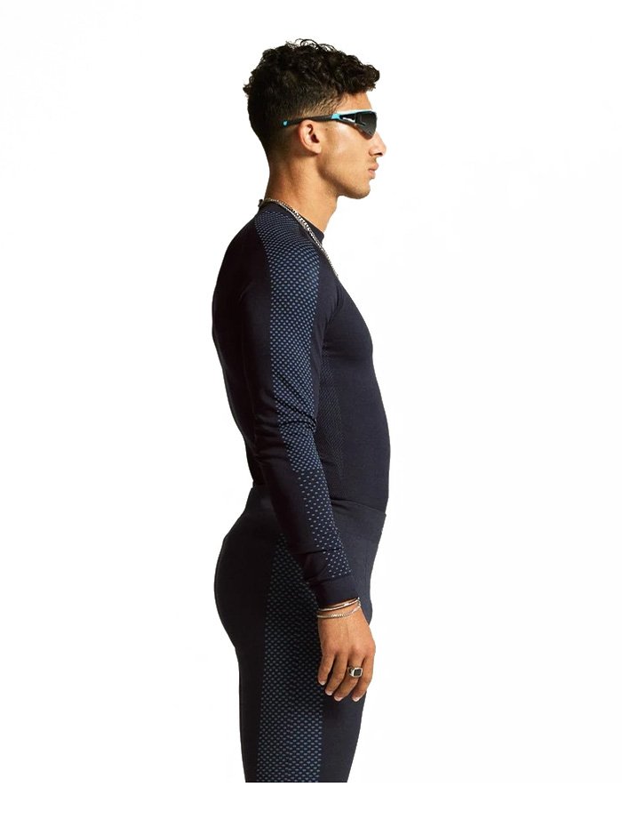 Термокофта изготовлена из высококачественного теплого джерси 3D-вязания, который эффективно отводит влагу от тела, поддерживая сухость и комфорт в любых условиях. Начес с внутренней стороны сохраняет тепло и регулирует температуру тела, предотвращая перегрев и обеспечивая защиту от холода. Плотная эргономичная посадка с бесшовным торсом предотвращает натирание и обеспечивает свободу движений.