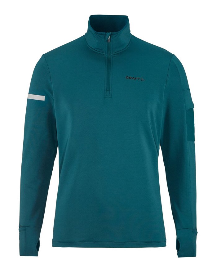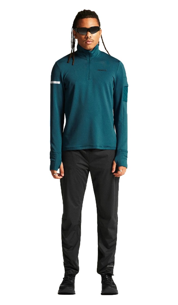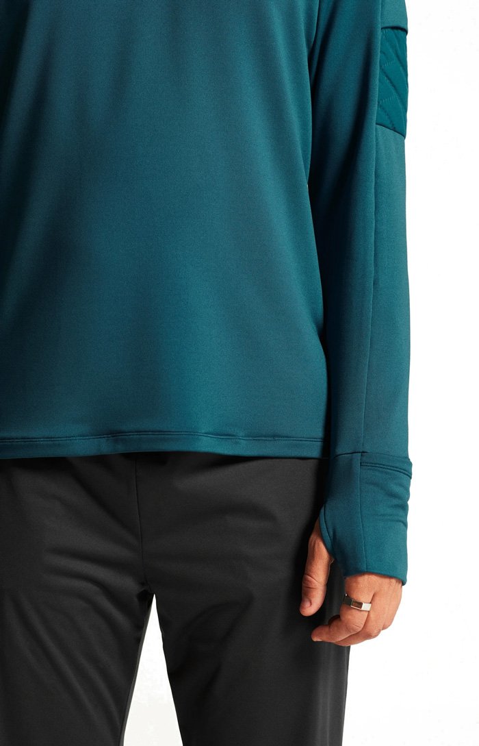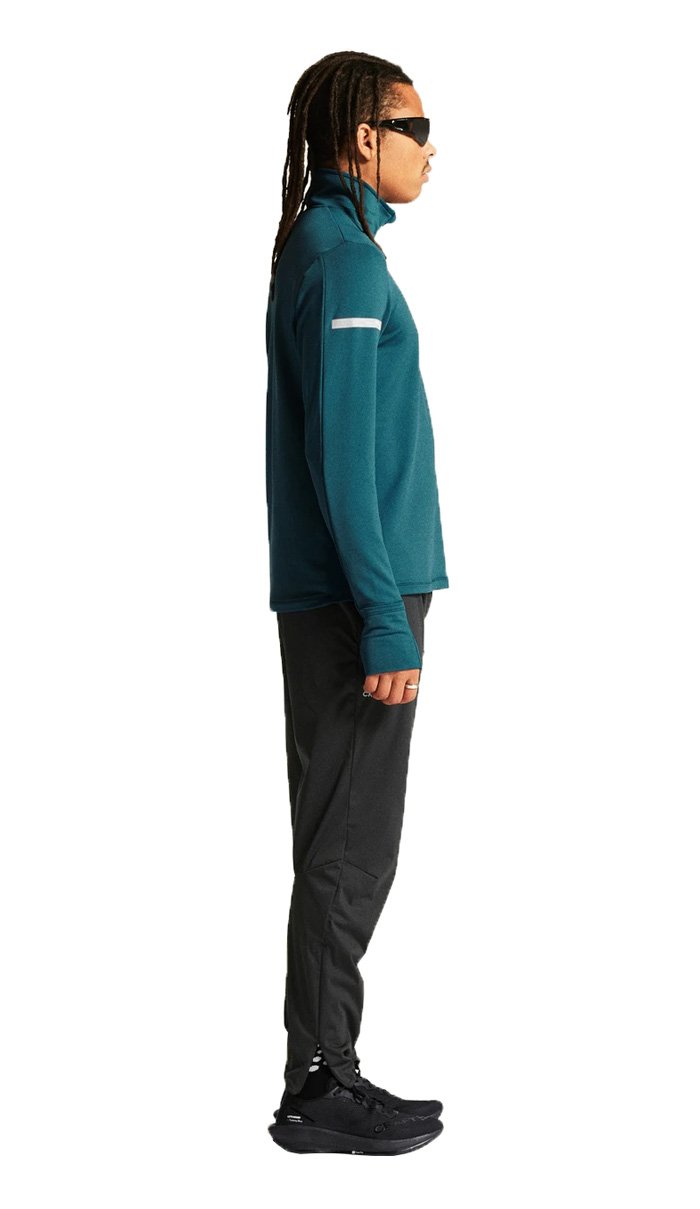 Кофта изготовлена из переработанного полиэстера, утепленного флисовым слоем с внутренней стороны. Сетчатые вставки подмышками и в области шеи способствуют отводу излишней влаги и улучшенной вентиляции. Молния до середины груди с внутренней планкой защищает шею от натирания, а высокий воротник сохраняет дополнительное тепло. Манжеты с отверстиями для большого пальца защищают кисти от холода. На левом рукаве размещен карман для хранения ключей или карточек.