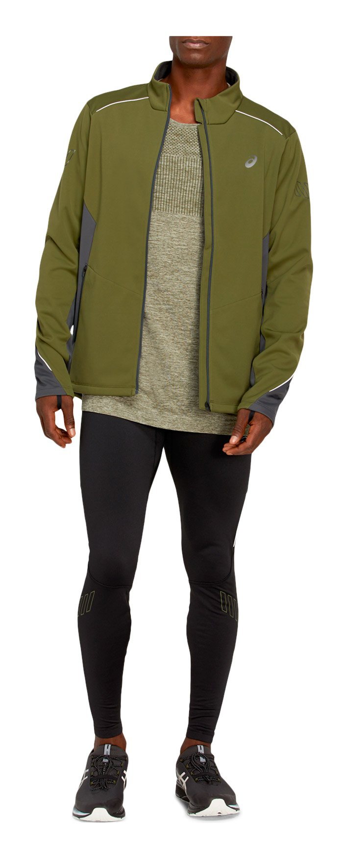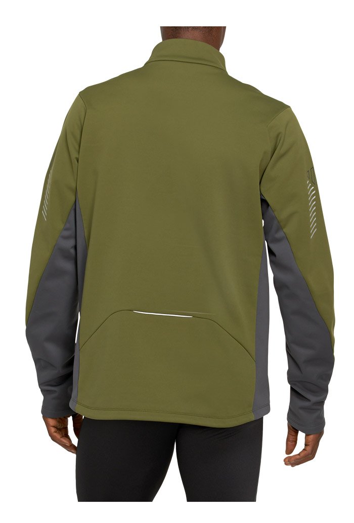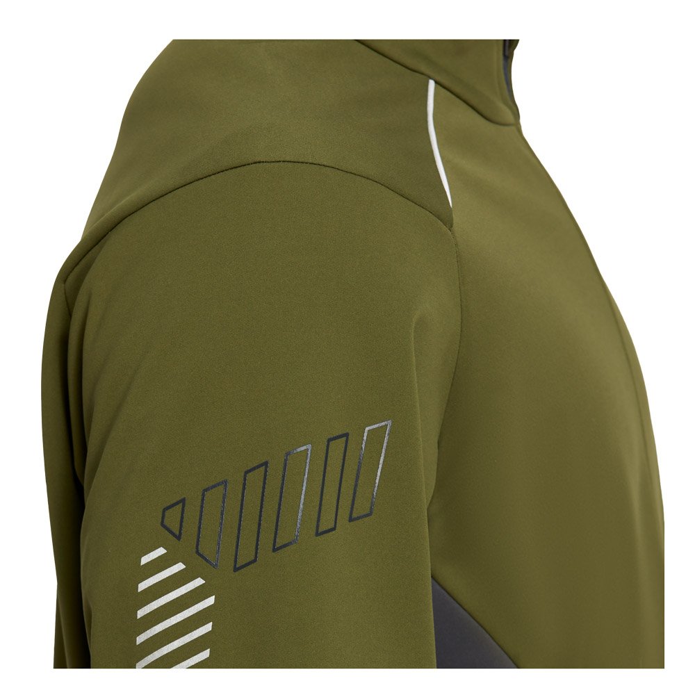 Мужская куртка для бега в зимний период. Сшита из плотной ткани Softshell, которая эффективно удерживает тепло, защищает от ветра, обладает влагоотталкивающими свойствами.
