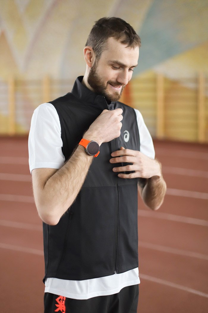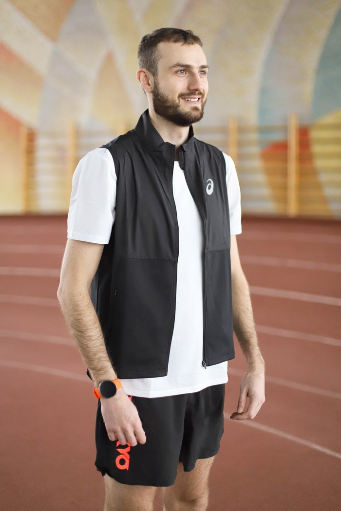 Легкий жилет приталенного кроя, отлично подходит в качестве дополнительного утепляющего слоя во время тренировок в прохладную погоду.
