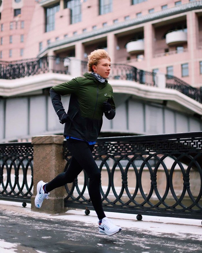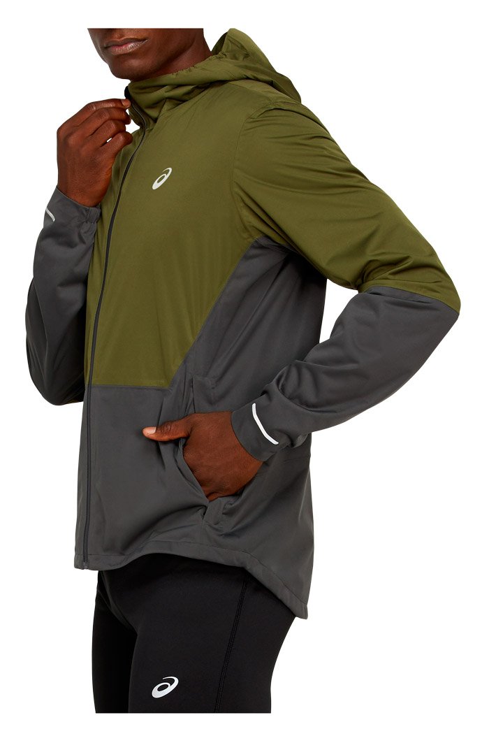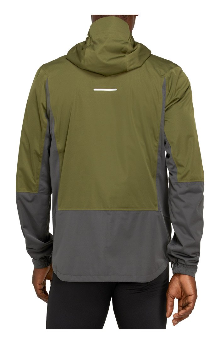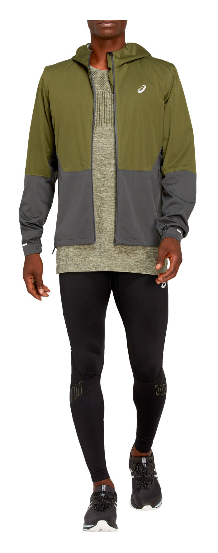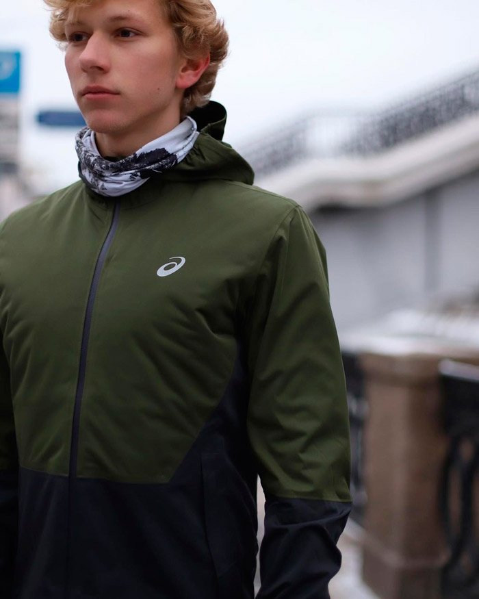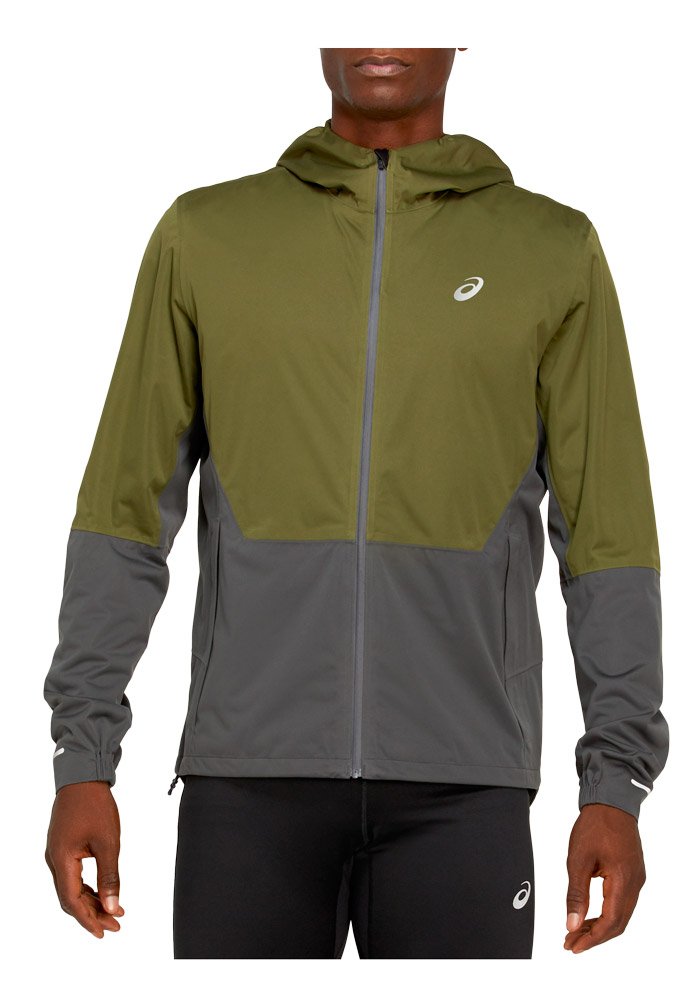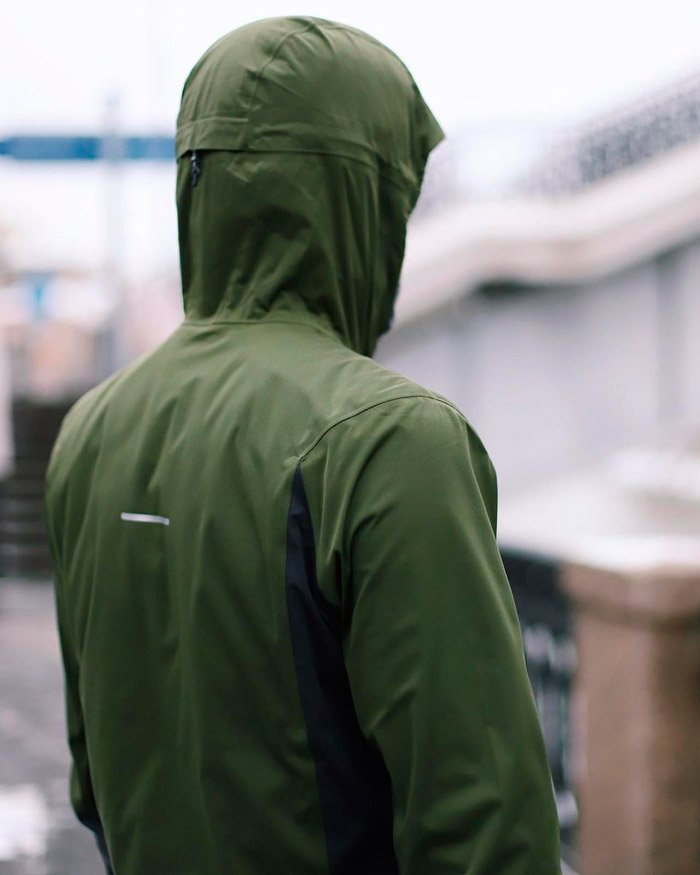 Мужская куртка с капюшоном для бега зимой и в межсезонье. Защищает от снега, дождя и ветра, так как изготовлена из водонепроницаемой и ветронепродуваемой ткани.