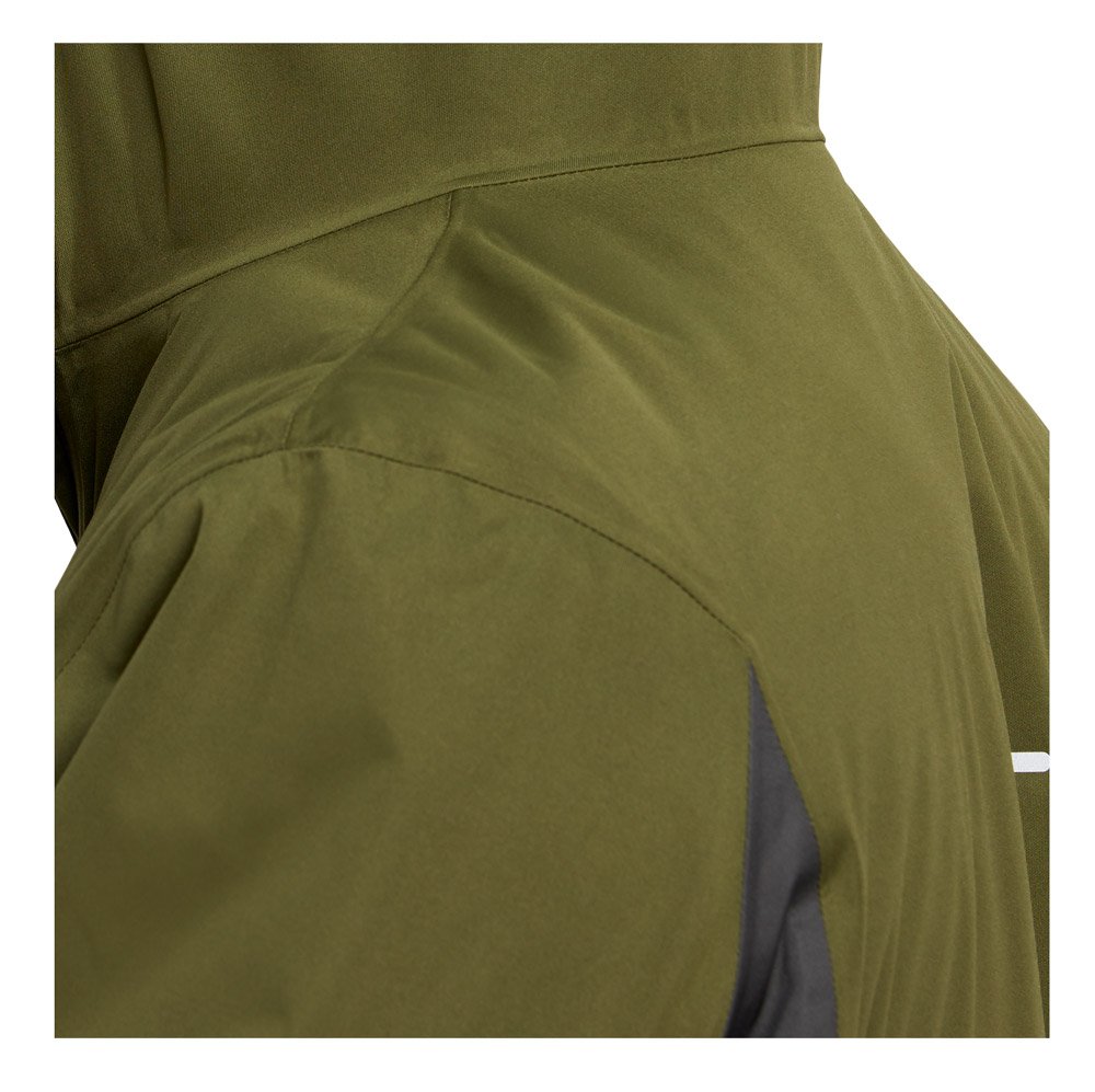 Манжеты с внутренней стороны собраны на резинку для защиты от ветра. По бокам карманы на молнии для мелочей. Низ куртки затягивается на кулиску. Светоотражающие элементы для безопасных тренировок в темное время суток.