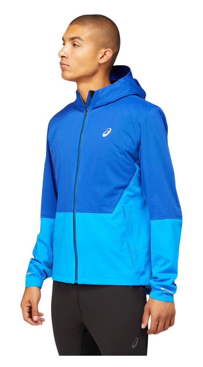 Мужская куртка с капюшоном для бега зимой и в межсезонье. Защищает от снега, дождя и ветра, так как изготовлена из водонепроницаемой и ветронепродуваемой ткани.