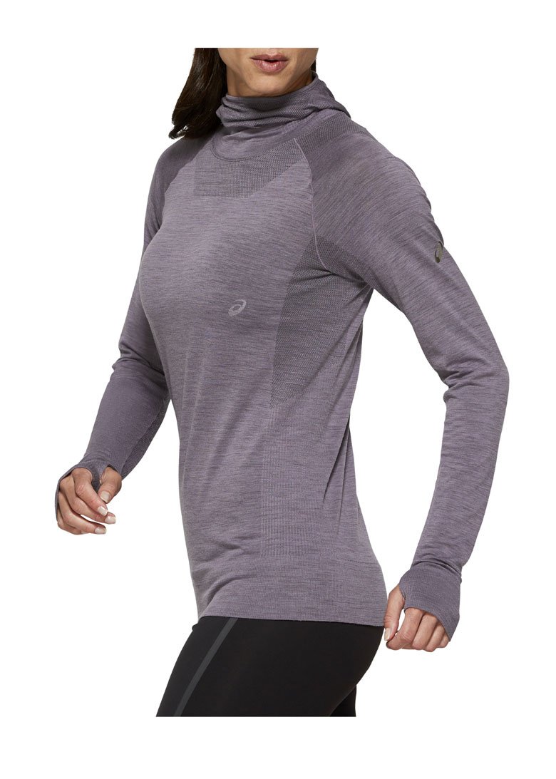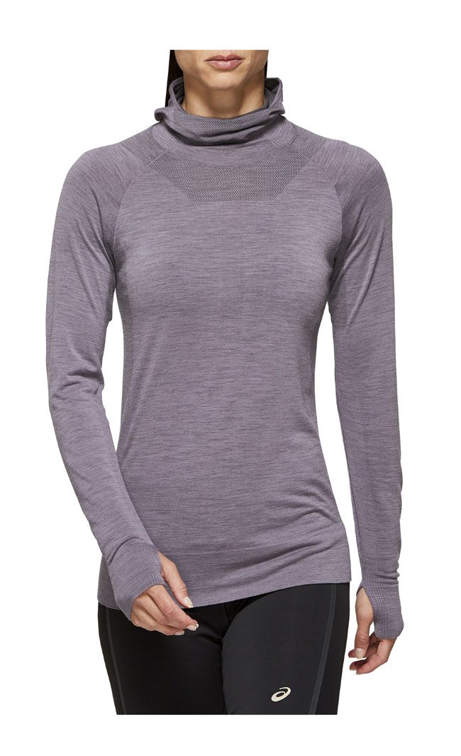 Женская кофта предназначенная для бега в зимний период. Модель изготовлена из шерстяного трикотажа, утепленный дизайн предусматривает воротник сконструированный в виде балаклавы и удлиненные рукава с разрезами для больших пальцев. В местах повышенного теплообмена расположены зоны с редкой вязкой для вентиляции.