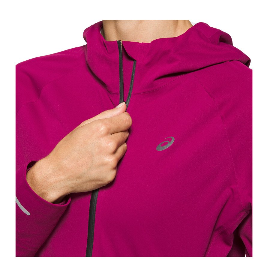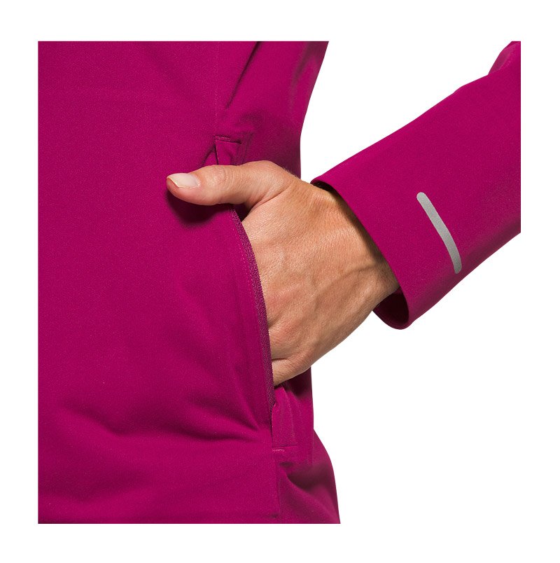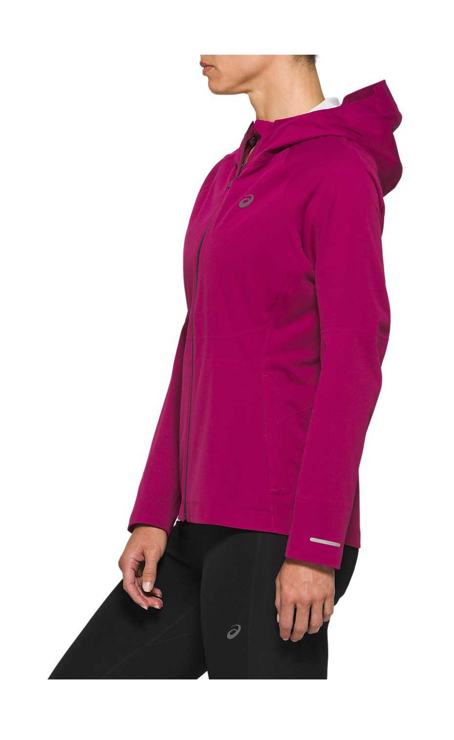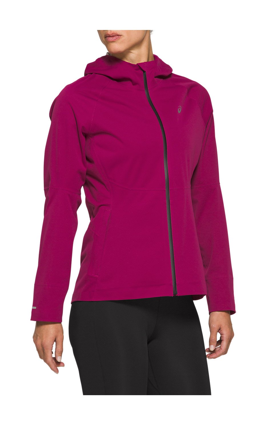 Женская куртка для бега в ненастную погоду. Модель защищает от дождя и ветра, так как изготовлена из водонепроницаемой и ветронепродуваемой ткани. Швы куртки имеют герметичное клеевое соединение, для исключения попадания через них влаги.
