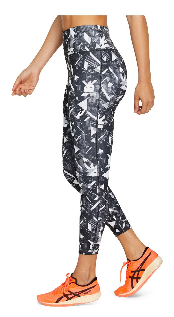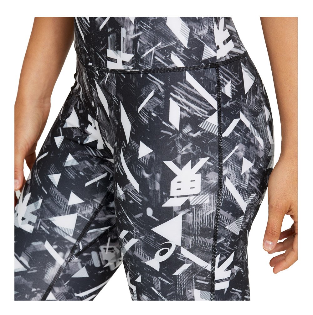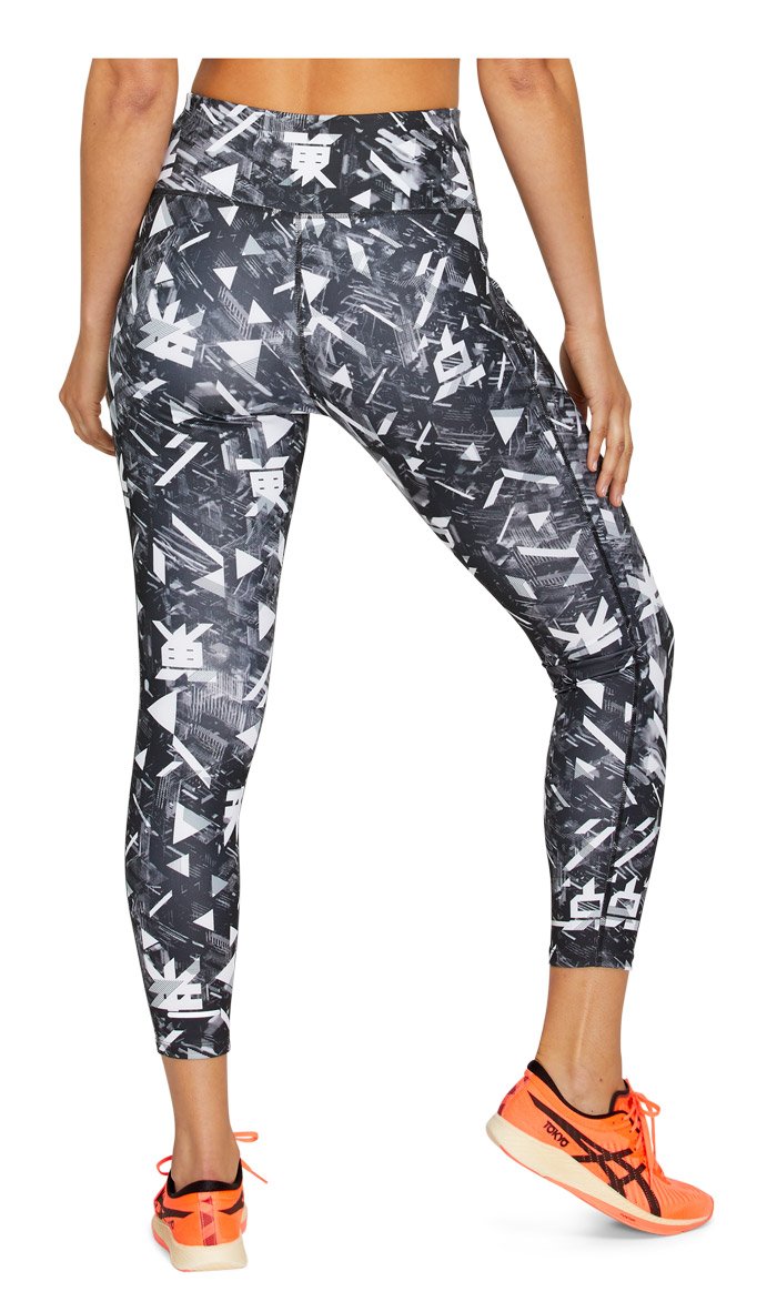 Женские тайтсы с черно-белым графическим рисунком. Эластичная ткань хорошо дышит, отводит влагу и быстро сохнет.