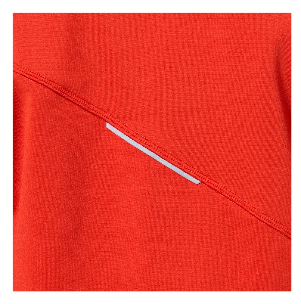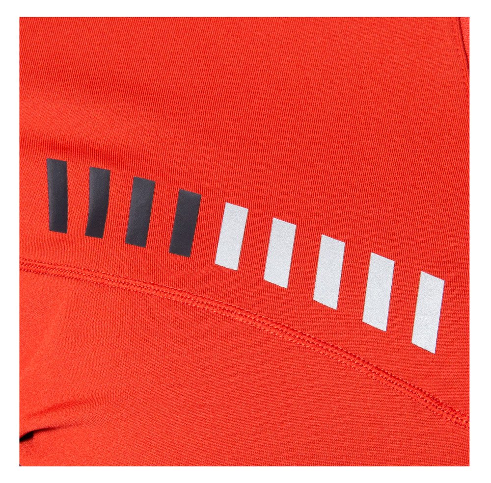 Плоские швы не натирают кожу. Внизу рукавов отверстия для больших пальцев. Светоотражающие элементы повышают видимость в темное время суток.