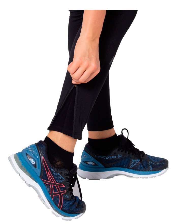 Плоский пояс продублирован шнурком для надежной посадки. Для удобства надевания тайтс, внизу штанин предусмотрены молнии. Плоские швы не натирают и не раздражают кожу.