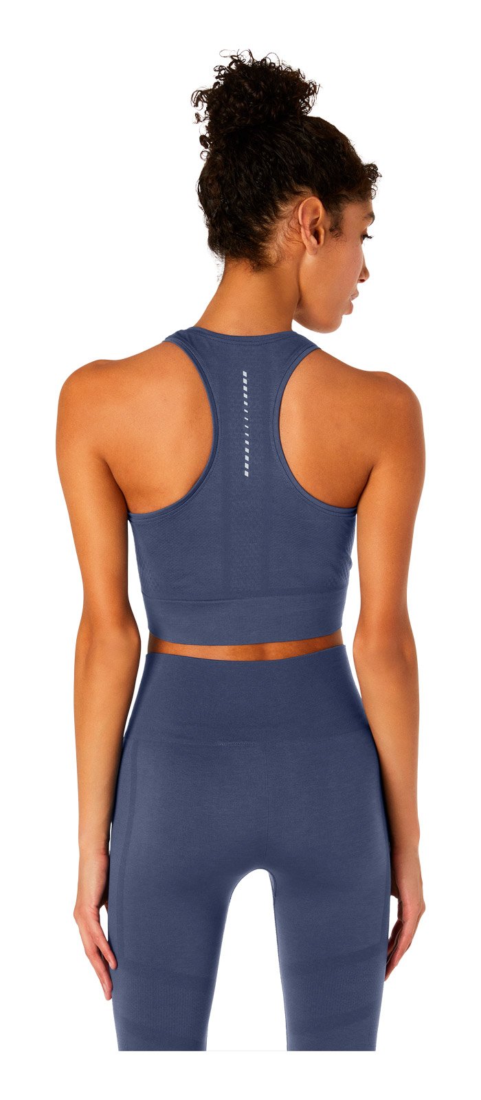 Спортивное бра обеспечивает надежную поддержку и естественную посадку, поэтому оптимально подходит для занятий бегом и фитнесом. Бесшовная конструкция предотвращает возможность натирания, а технологичная ткань быстро отводит влагу и обладает отличными воздухопроницаемыми свойствами.