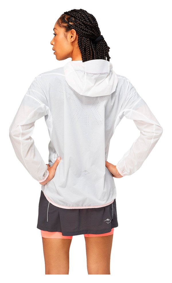 Капюшон оснащен растягивающейся вставкой, что обеспечивает эргономичную регулируемую посадку и свободный обзор. Светоотражающие элементы повышают безопасность пробежек в темное время суток.