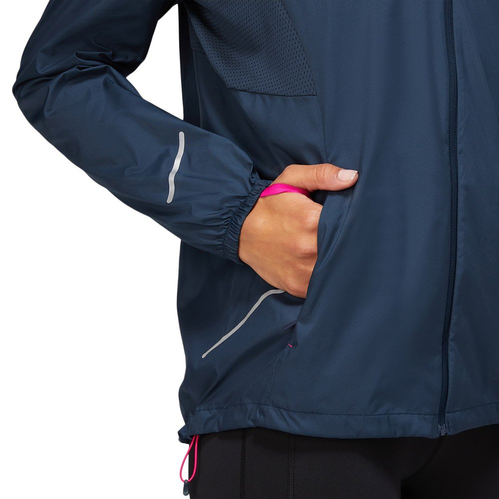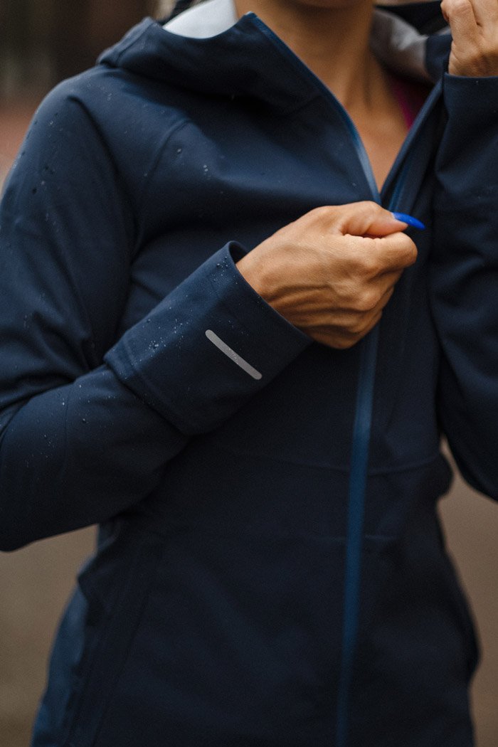 Удобная ветровка подходит для бега в прохладную погоду. Легкая водоотталкивающая ткань надежно защищает от дождя и ветра, а также быстро отводит влагу от тела. По бокам расположены два вместительных кармана на молнии для хранения мелочей.