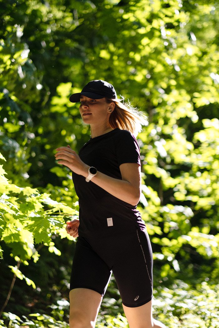 Спринтеры из мягкой и эластичной ткани отличаются комфортной посадкой и легкой поддержкой для мышц. Материал быстро сохнет и отводит влагу. Сзади на поясе расположен вместительный карман на молнии, в который можно убрать телефон во время тренировки.