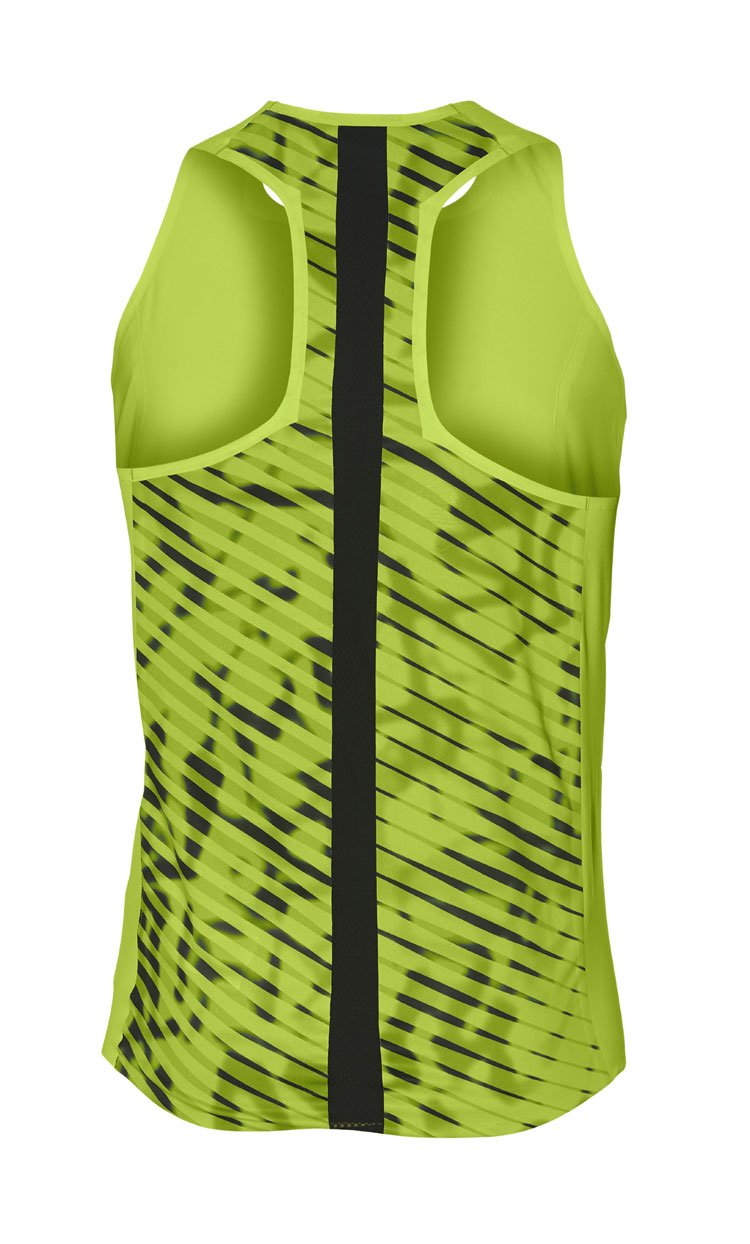 Легкая мужская майка для бега с принтом и перфорацией на спине. Модель хорошо выводит влагу и быстро сохнет, так как изготовлена из тонкой ткани с гладкой структурой. Для вентиляции на спине предусмотрена панель с лазерной перфорацией и сетчатая вставка по центру.