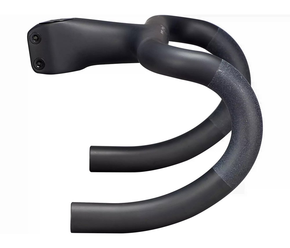 Легкий руль из усовершенствованного углеродного композита с возможностью внутренней прокладки кабеля. Цельная комбинация руля и выноса существенно облегчает вес и повышает прочность.
