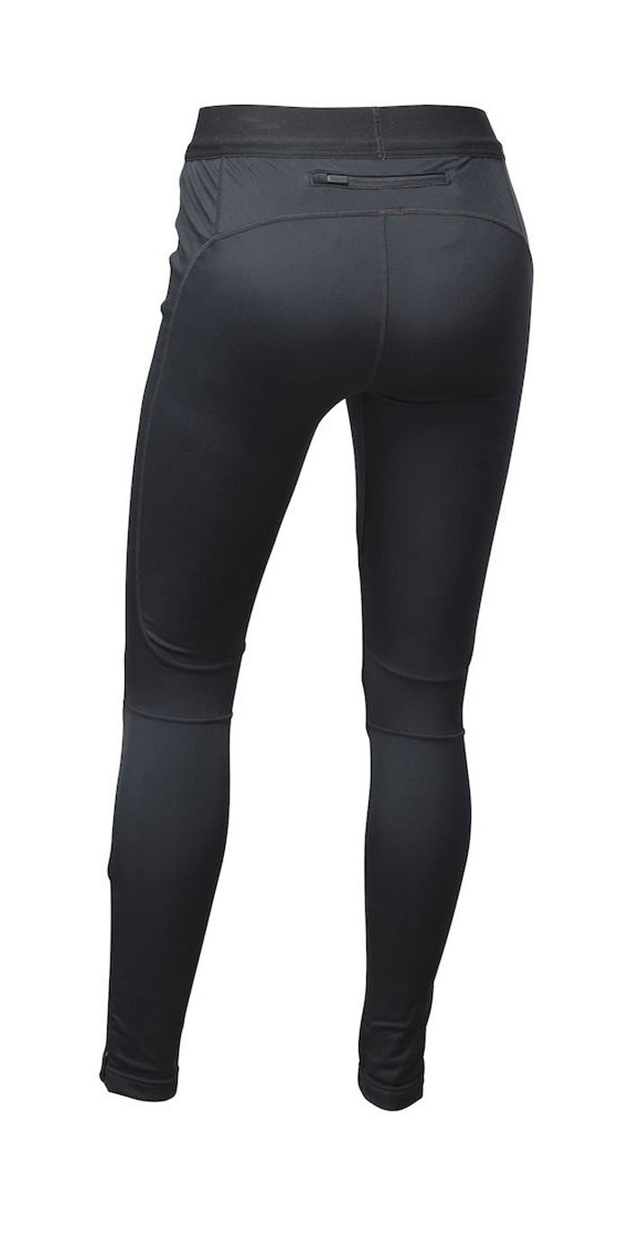 Впереди расположены эластичные панели Gore® Windsopper ™, которые не пропускают холодный ветер, но при этом обладают отличными дышащими свойствами. Задняя часть тайтс сшита из мягкого трикотажа с начесом с внутренней стороны. Пояс с широкой резинкой продублирован шнурком для регулировки посадки. Внизу штанин молнии для быстрого и удобного переодевания. Сзади в области поясницы карман на молнии для необходимых вещей.