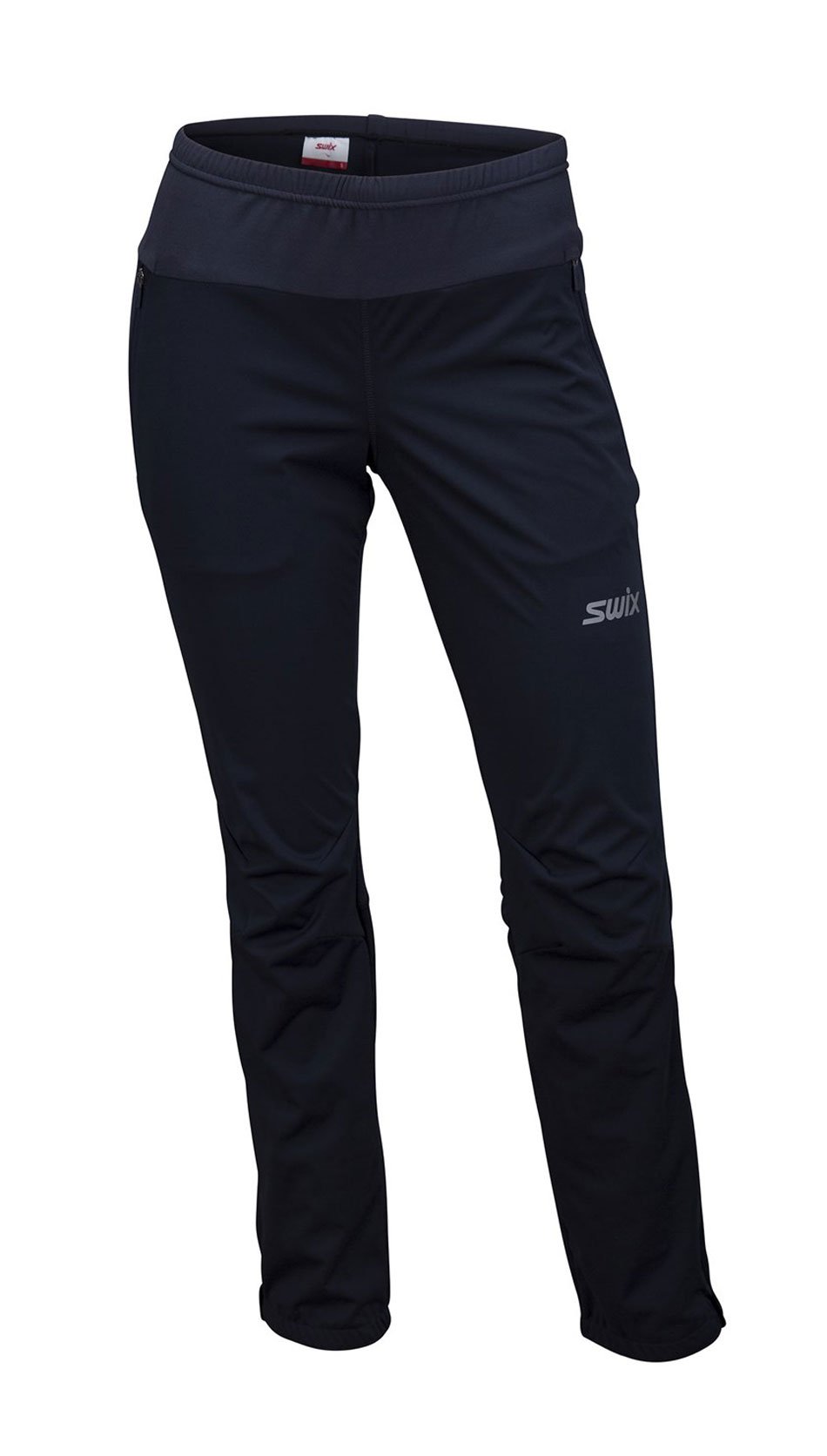 Женские разминочные штаны подходят как для интенсивных тренировок, так и для неспешного катания на лыжах. Модель великолепно удерживает тепло, так как сшита из мягкого эластичного софтшелла с начесом с внутренней стороны. Передняя часть брюк располагает дышащей мембраной для защиты от ветра.
