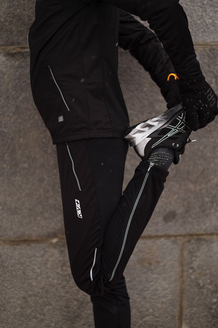 Эти брюки идеально подходят для лыжных тренировок и бега в зимний период. Передняя часть брюк выполнена из мембранной ткани Wind Protect, она не продувается и обладает влагоотталкивающими свойствами. Задняя часть из эластичной ткани Stretch Fabric хорошо тянется и не сковывает движений. По бокам расположены удобные карманы на молниях. Спереди и сзади нанесены светоотражающие элементы для хорошей видимости в темное время суток.