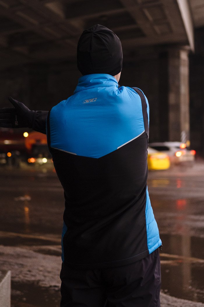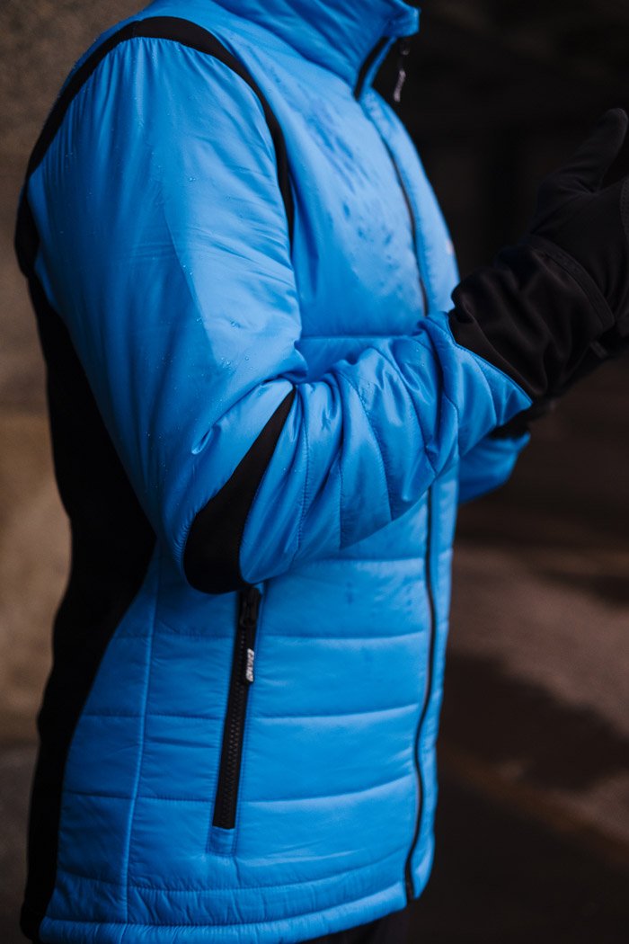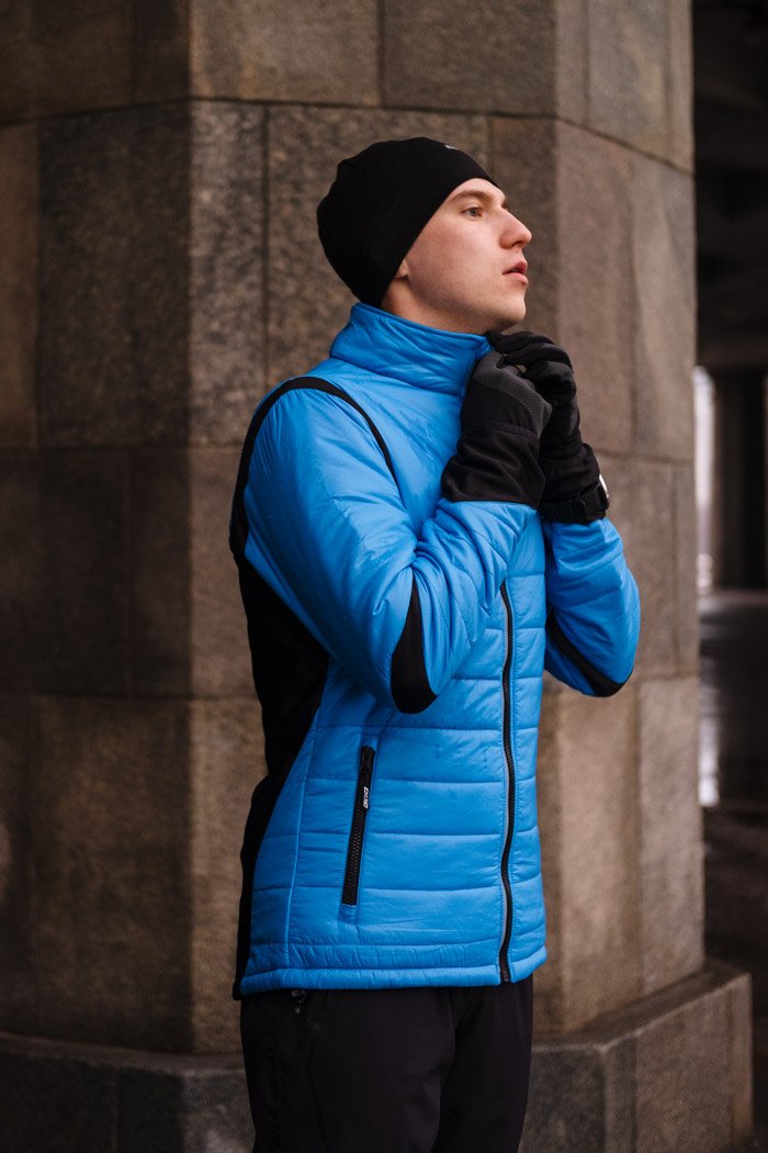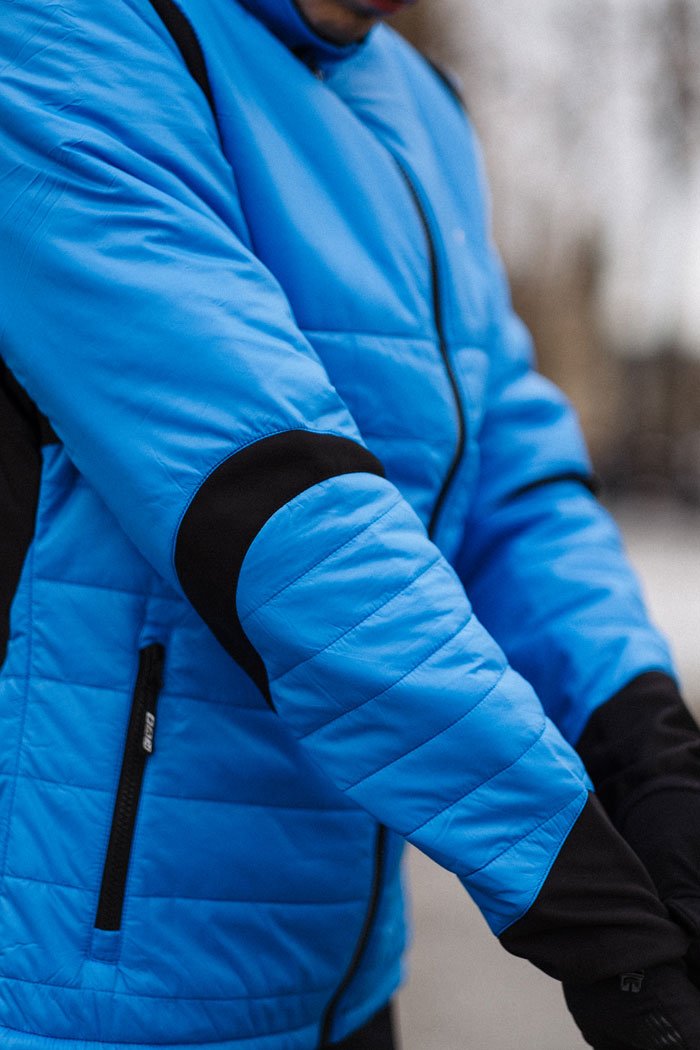 Теплая куртка для лыжных тренировок и бега в холодный период года. Специальное водостойкое покрытие отталкивает влагу, не препятствуя при этом воздухопроницаемости, а эластичная ткань в области спины удерживает тепло и отводит влагу. Свободный крой и эргономичное строение зоны локтей обеспечивают комфортную и удобную посадку. По бокам располагаются карманы на молниях, в которых можно хранить необходимые на пробежке мелочи. Светоотражающие элементы повышают видимость в темное время суток.